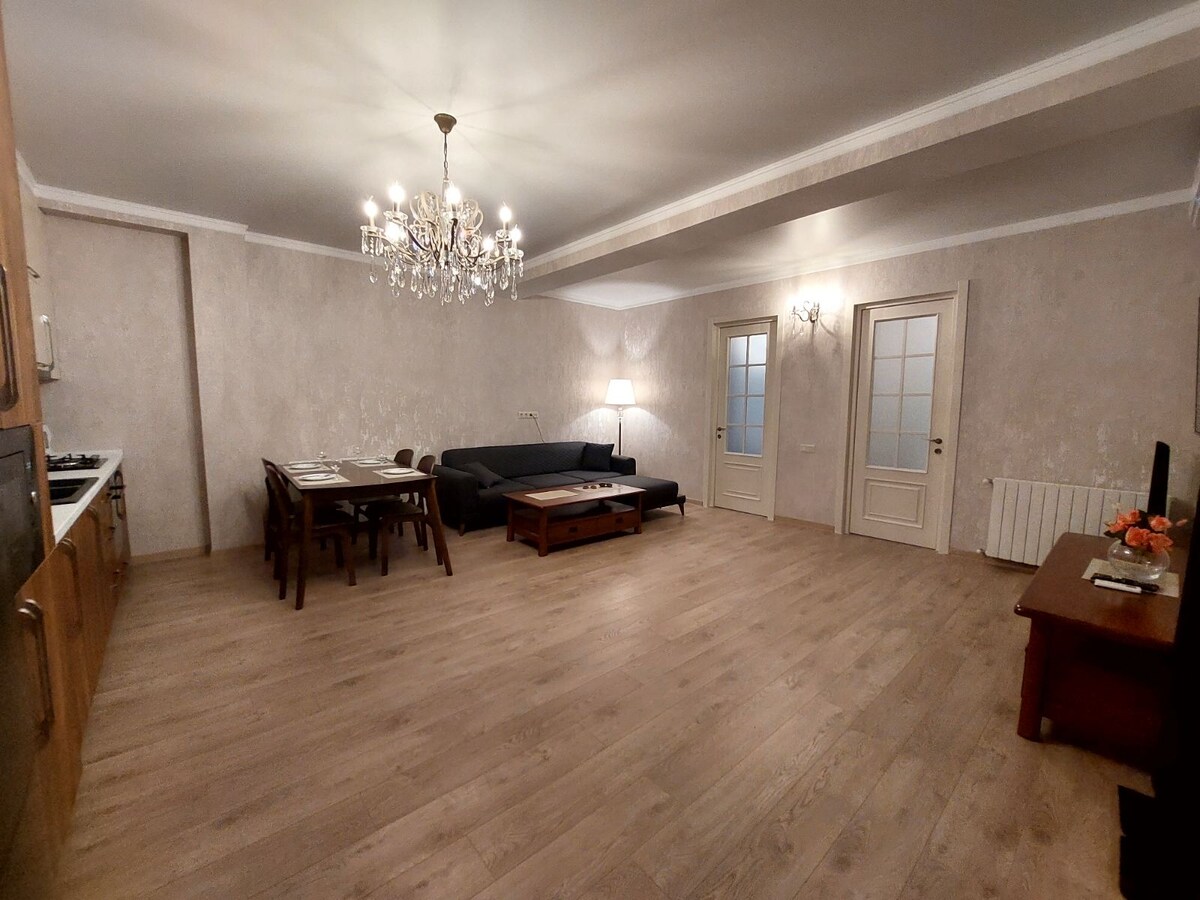 Apartamento acogedor y confortable, equipado con todo el inventario y electrodomésticos necesarios. El apartamento se desinfecta cuando cada huésped se va. Se proporcionan sábanas y toallas. Tiene una vista inusual desde el balcón y una ubicación muy buena: calle 9 de abril, n .º1. A pie necesitarás 10 minutos para aparcar, 15 minutos. A los baños y al centro de la ciudad. El apartamento cuenta con supermercados, farmacia, panadería, oficina de correos georgiana y parada de autobús.