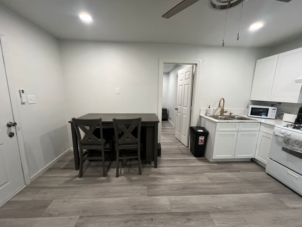 Welcome to our Charming Studio!! Very Cozy place to spend the night and relax in the Queen size bed with Luxury Bedding (Only one bed in studio). 55" Smart TV, and Free Wi-Fi included. Security Cameras around the premises to keep you secure. Small kitchen with all the amenities included, Refrigerator, Coffe Pot, Toaster, Microwave and Electric Grill for cooking. Small dining table and sitting area. Complete bathroom with shampoo, conditioner, bodywash and towels included. Small place but Cozy.