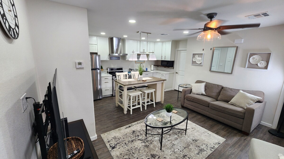 ¡Ubicación central ideal donde la privacidad es importante! Comienza con una plaza de estacionamiento cerca de la puerta de entrada. Entra en una zona vallada y disfruta de toda la sala de estar al aire libre muy bien decorada con una parrilla y comedor. Disfruta de la casa de huéspedes con lo mejor de los muebles y comodidades orientados a los detalles que cuentan con 2 dormitorios, 1 baño, cocina totalmente equipada, sala de estar con una estación de trabajo en casa y un sofá cama. Lavadora/secadora y otros espacios bien hechos para cubrir todas las necesidades personales.