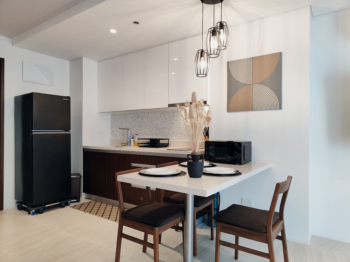 Enjoy our modern 37sqm premium studio on the 12th floor of Tambuli Resort's Tower C! Relax on the private balcony with stunning sea views. Perfect for up to 4 guests (1 Queen bed, 1 Queen sofa bed). Features ultra-fast 300Mbps Wi-Fi, Smart TV with free Netflix, and a fully equipped kitchen with a coffee maker & free water dispenser. Guests get free access to the Tower A/B pool, with optional day passes for the private beach and 5 main resort pools. Book your tropical getaway today!