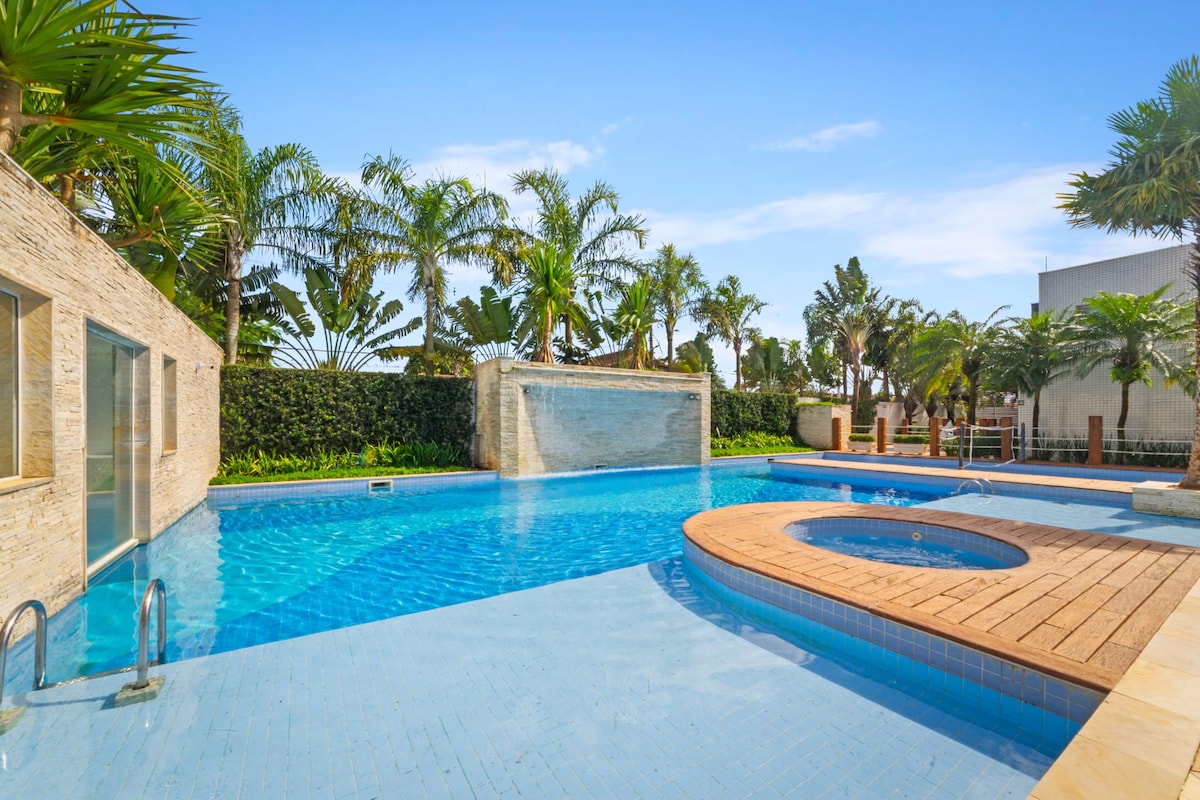 🏖️Apartamento nuevo en Jd São Lourenco, a solo 300 metros de la paradisíaca Praia da Riviera de São Lourenco, ¡una de las más lujosas y tranquilas de la costa de São Paulo! A 400 metros de la playa reservada de Itaguaré. 1 dormitorio con cama doble + cama individual, sofá cama. Cocina equipada, TV moderna, Internet, aire acondicionado y balcón con parrilla. Ubicación inmejorable: 2 playas, frente al moderno bar y bistró La Casita y sobre la única farmacia de la región. Ofrecemos 3 sillas + sombrilla y acceso a la piscina a 10 minutos a pie