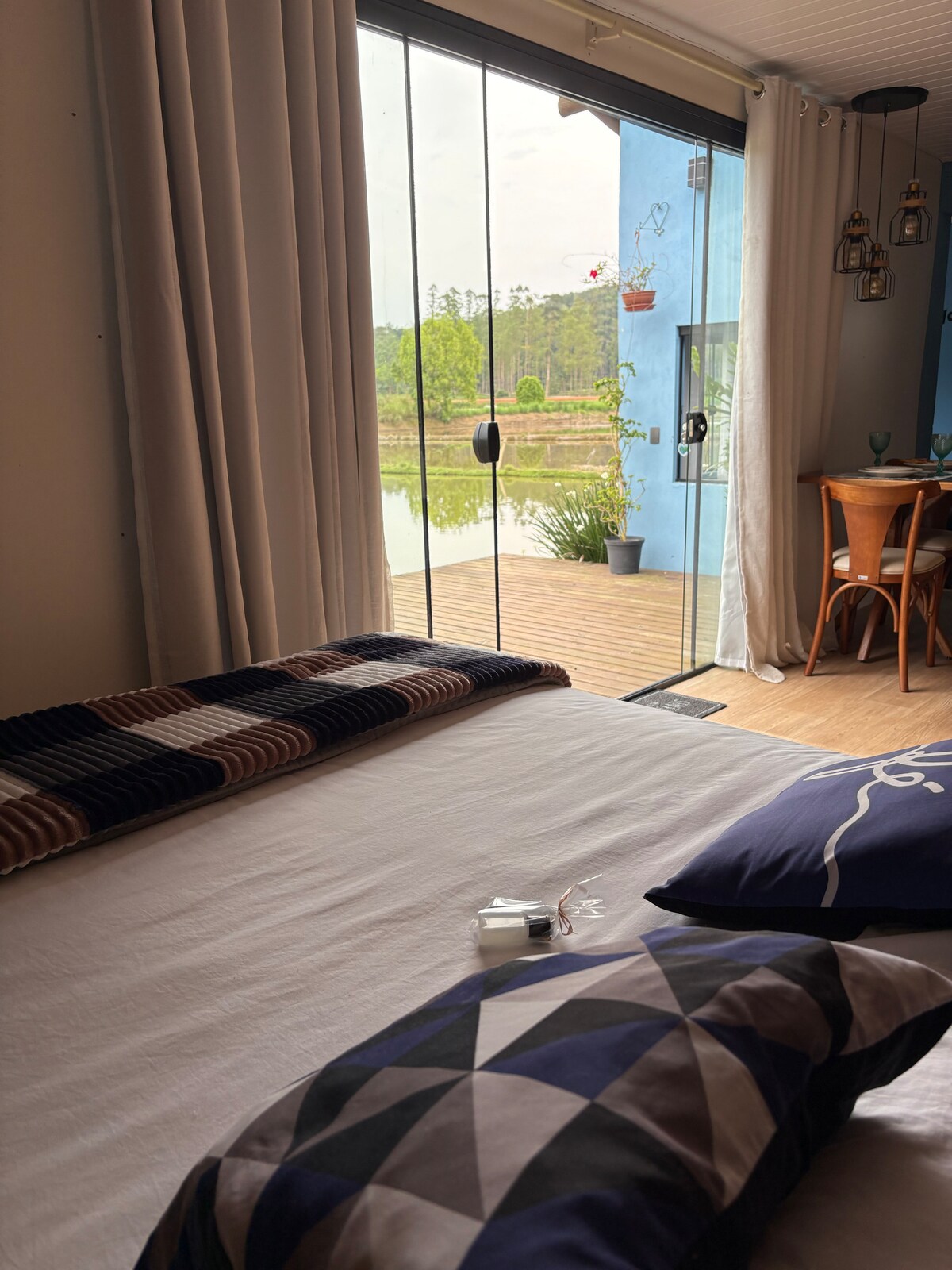 Já pensou em acordar acima das nuvens? Na Cabana Panorama, a mais de 400m de altitude, você vive essa experiência única: assistir ao nascer do sol diante de um mar de nuvens que cobre o Vale Europeu. Com cama king size, banheira com vista e lareira, o refúgio perfeito une conforto, privacidade e o espetáculo da natureza em sua forma mais mágica. A dois ou em galera: a Cabana Panorama acolhe casais, amigos em colchão de ar na sala e até barracas no gramado, para uma vivência inesquecível.