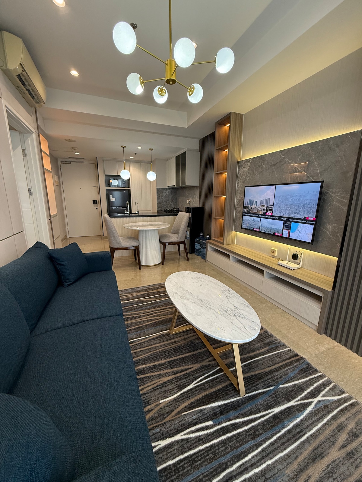 Disfruta de un momento alegre con tu cónyuge, familiares o amigos en este alojamiento con estilo. Este apartamento ofrece un ambiente acogedor y la planta abierta conecta a la perfección la sala de estar, la cocina y el comedor. Los servicios modernos y los cuidados elementos de diseño se suman a su encanto, lo que lo convierte en un lugar verdaderamente especial. Situado justo al lado de Aeon Mall BSD y a 3 minutos en coche de International Convention Exhibition (ICE) BSD. Esta es una unidad de nueva construcción y la renovación completa finalizó a principios de 2024.