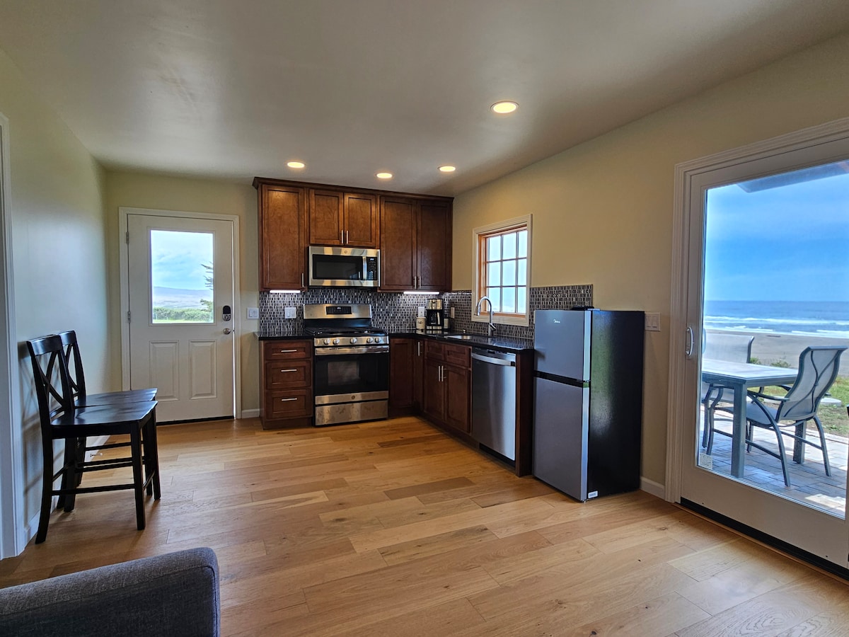 This recently updated house is the perfect home base for your Mendocino Coast vacation. It's in the "sun belt," where it's usually warm even on foggy days. Located 2 miles from Highway 1 in Fort Bragg, this residence is still very close to downtown and other attractions. You can be at Pudding Creek Beach in 5 minutes, at Glass Beach and the Skunk Train in 7 minutes, at the world-famous Mendocino Coast Botanical Gardens 12 minutes, and in the historic downtown of Mendocino Village in 20 minutes.