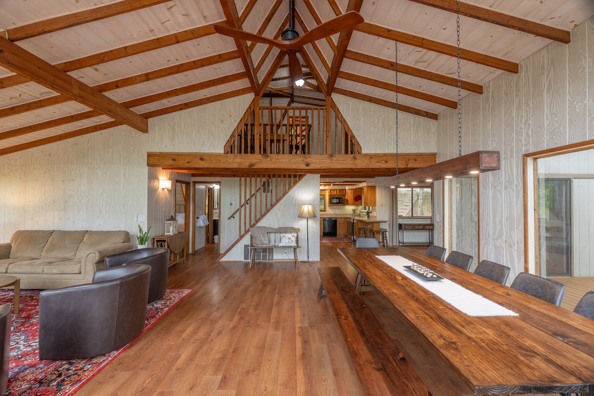 Celebrate any season & relax with the whole family at our spacious Chalet. At the end of Lake Powderhorn & framed by towering trees, waterfall & babbling creek, this is the ideal setting for both relaxation & fun. You'll fall in love with the expansive outdoor fire pit area & deck, ping pong table, private dock to fish & kayak from. Enjoy your morning coffee or evening glass of wine on the master bedroom treetop deck. If it's gets to cold you can cozy up next to the indoor stone fireplace.
