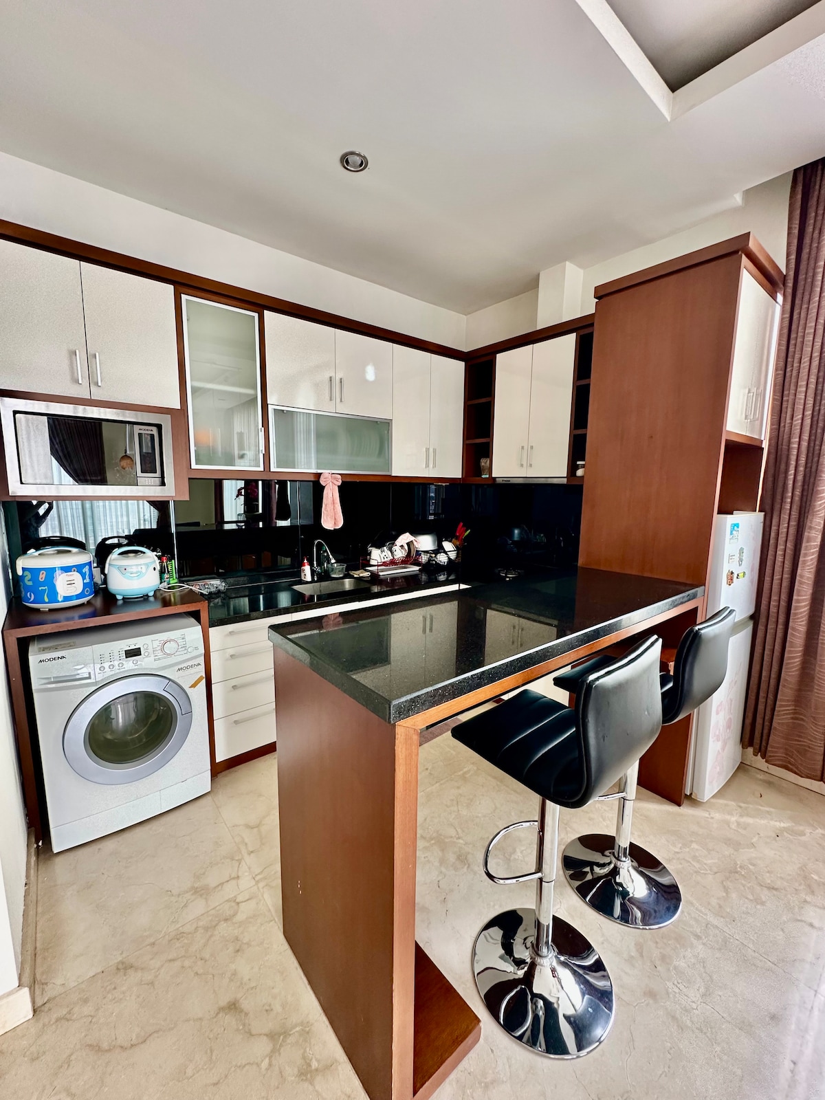 Welcome to Midsommar Home. It is located in the city centre of Bandung at Dago Suite Apt Building 11th floor. The design of this apt is inspired by hygge concept which are mix of cosiness, charm, comfort, kinship and simpleness with the touch of the colors of the scandinavian midsommar sky. It fits perfectly up to four people who seek a perfect getaway vacation.