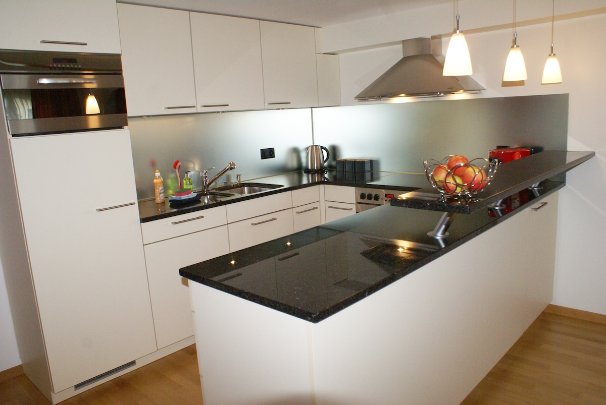 Modern and bright gallery apartment in the heart of Interlaken. This full of light stylish apartment is newly refurbished, fresh and has all the amenities necessary for a comfortable wonderful stay. The apartment is ideal for a family or a group of friends, who appreciate good quality accommodation and want to be in the heart of the city. Located in a peaceful area, next to a Hohematte park, apartment is only stone throw away from all main Interlaken activities, shops and restaurants.