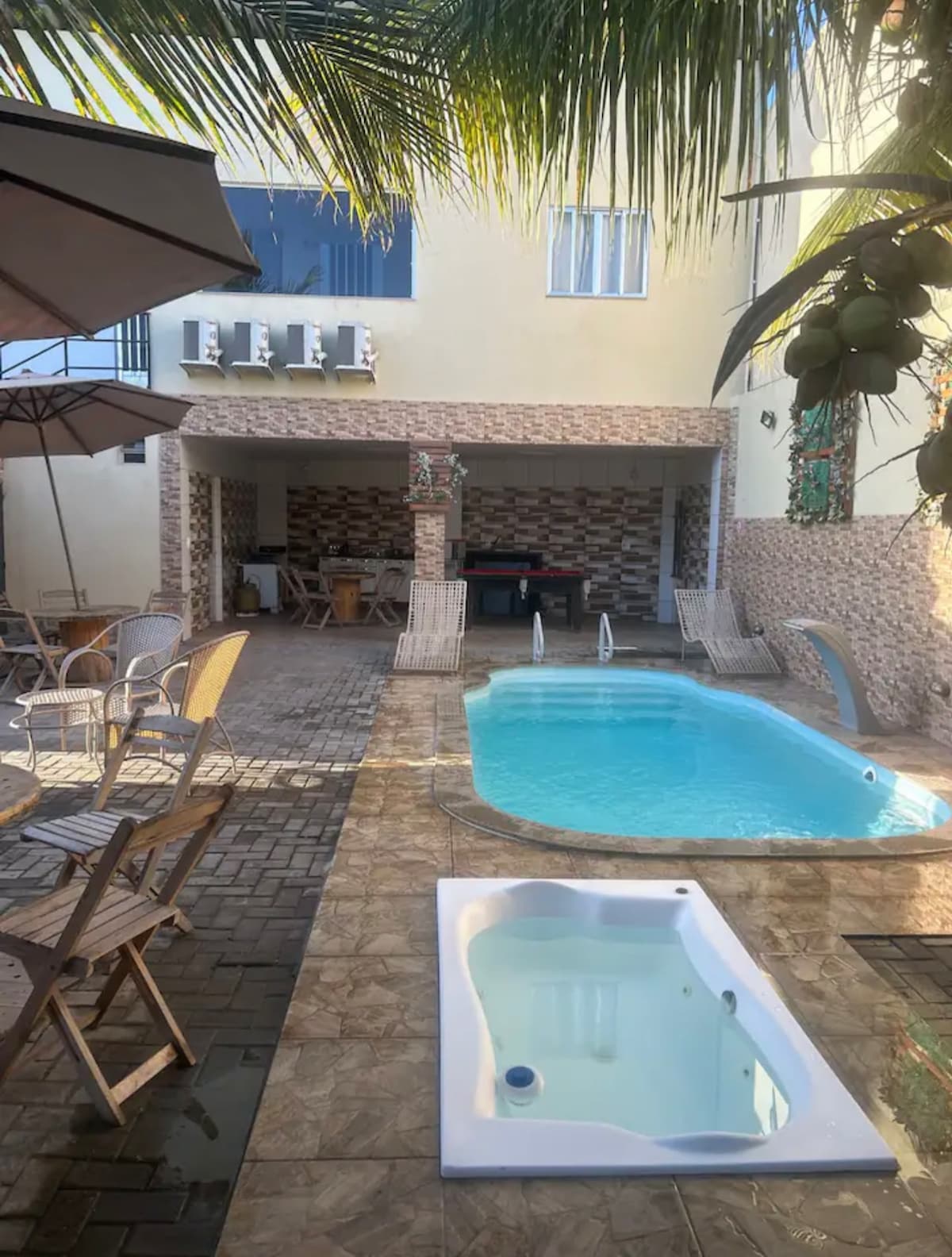 Casa/dúplex plano, compacto pero bien dividido, y organizado con muebles y electrodomésticos modernos y nuevos. Acogemos cómodamente a 10 personas, distribuidas en 4 habitaciones (1 suite), todas las habitaciones con aire acondicionado DIVIDIDO y caja de cama . Después de un día de turismo, podrás relajarte en la sauna que proporciona acceso a la piscina y al hidromasaje de la piscina (jacuzzi). El espacio está cerca del transporte público y fácil acceso al centro turístico. Te va a encantar el ambiente, el área común y la iluminación.