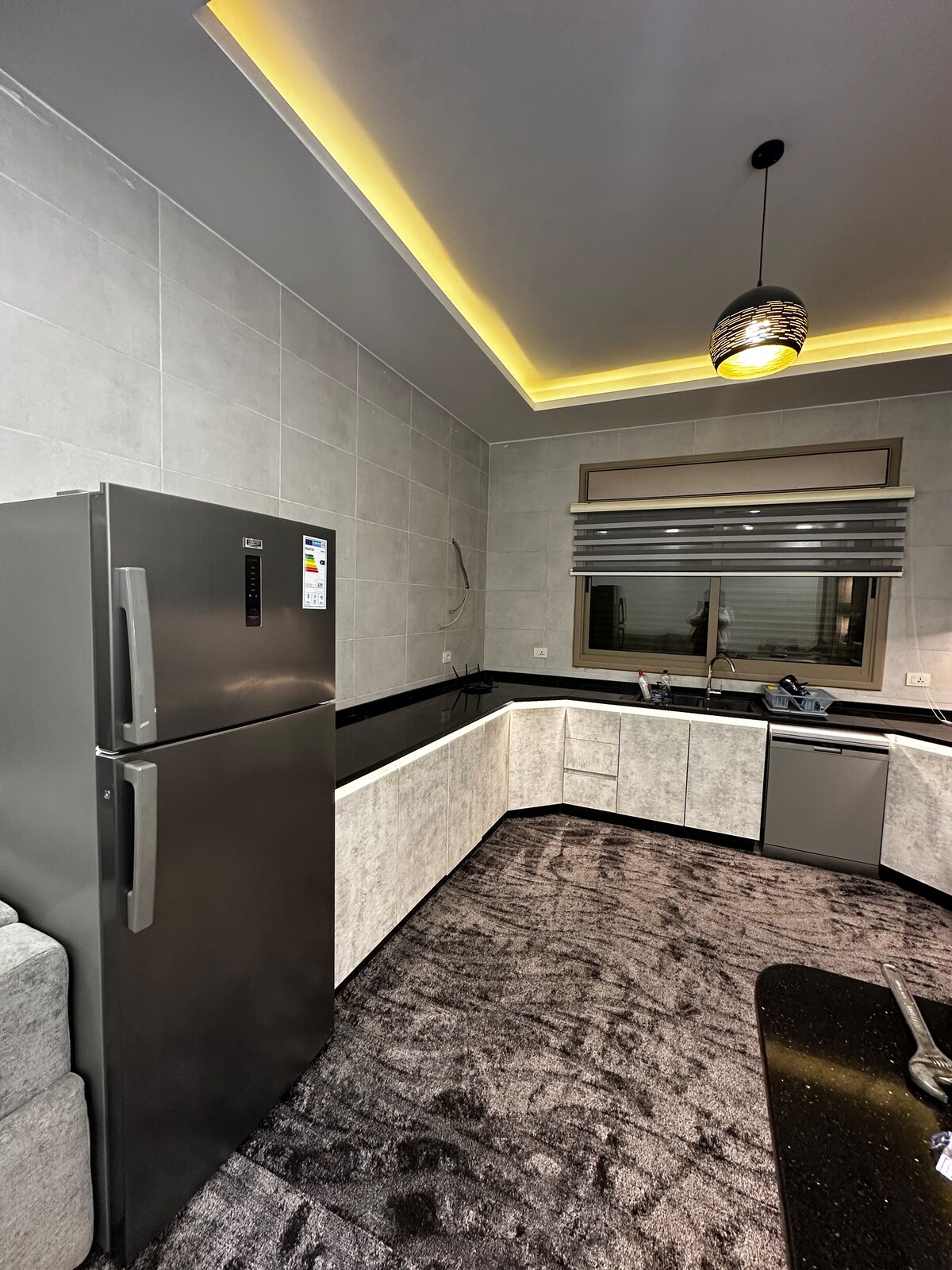 Amplio apartamento a estrenar de 150 metros cuadrados Características: 3 dormitorios: 1 dormitorio principal. 2 habitaciones adicionales 3 baños Sala de estar Majlis para huéspedes Electrodomésticos: refrigerador de 20 pies Lavadora automática en el horno de gas Batidora de alimentos para aspiradora de microondas Calentador de agua para 6 personas Utensilios de cocina completos Entretenimiento: Televisor inteligente de 50 pulgadas 3 unidades de aire acondicionado divididas Comodidades adicionales: estacionamiento gratuito Cámara de entrada a la mesa de centro Puertas de seguridad: parrilla de barbacoa grande y cascada Patio al aire libre de 150 metros cuadrados
