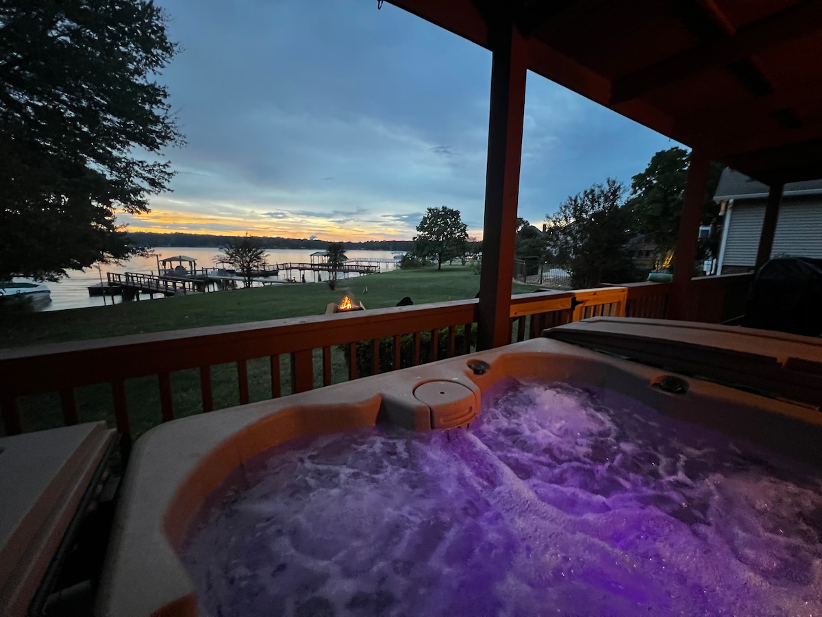 ¡Mira nuestras reseñas! ¡Nuevo jacuzzi de 25 000 dólares en noviembre de 2024! Esta casa recientemente renovada cuenta con jacuzzi, chimenea, playa privada, muelle y barco de alquiler (400 USD/día). ¡Se admiten mascotas! Elige cómo disfrutar de tu viaje: prepara s'mores, relájate en el jacuzzi, date un baño, túmbate en la playa, haz una barbacoa en el porche y disfruta de la puesta de sol. También tenemos las pequeñas cosas: cocina surtida, libros, juegos, internet rápido y mucho más. Hemos pensado en todo para ofrecerte la mejor experiencia.