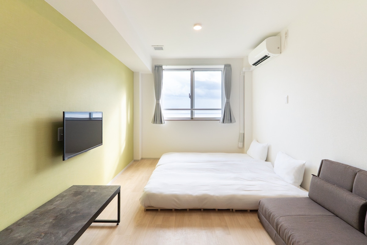 Esta es una habitación en el segundo piso de un edificio de apartamentos justo enfrente del puerto. Es una habitación en esquina orientada al sur con vistas al puerto desde la habitación. La habitación tiene una lavadora y secadora automática de tipo tambor, un inodoro con bidé, una cocina con estufa de gas de 2 quemadores con parrilla y un baño con ducha, y es adecuada para estancias largas. Compatible con Chromecast y wifi disponible.Puedes usar varios servicios de streaming de video con tu propia cuenta. El edificio tiene un cierre automático, para que puedas sentirte a gusto cuando salgas. Cuenta con todo lo que necesitas y es un entorno sin estrés durante tu estancia. A unos 10 minutos a pie del centro de la ciudad.Es relativamente fácil moverse sin un auto de alquiler, y tenemos 1 bicicleta gratuita disponible. Si vienes en auto, te mostraremos un espacio libre cercano a 3 minutos a pie. ※ También podemos dirigirte a un estacionamiento de pago ubicado a unos 10 segundos a pie del departamento.Pregunta con anticipación, ya que es posible que no podamos proporcionar información debido a la disponibilidad. Recomendamos 1 persona para el alojamiento, pero podemos alojar hasta 2 personas por una tarifa adicional. Si lo estás utilizando para 2 personas, prepararemos 1 juego de futones, así que no dudes en ponerte en contacto con nosotros al momento de hacer la reservación.