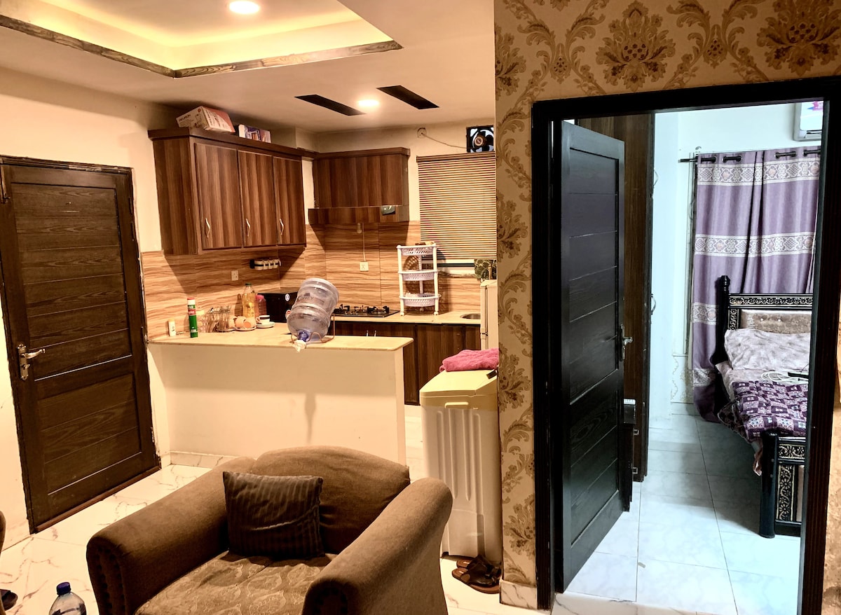 Ofrecemos apartamento de 2 dormitorios totalmente amueblado por día/noche en Islamabad Sector E11/2. Tu seguridad y protección es nuestra primera prioridad, ambiente pacífico y disponibilidad de todo. Planta baja, wifi, baño caliente, habitaciones con aire acondicionado y salón, televisor LCD inteligente, salón totalmente amueblado. Somos la mejor opción para tu familia. Zona de estacionamiento totalmente segura.