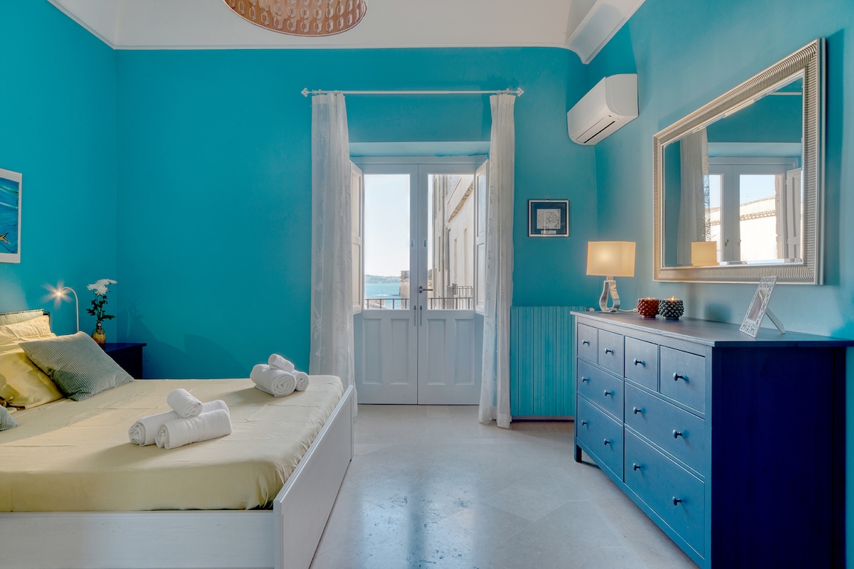 Este elegante y luminoso apartamento de 90 metros cuadrados se encuentra en el segundo piso (sin ascensor) de un antiguo edificio de 1890 y goza de una de las vistas más hermosas del mar y las puestas de sol de Ortigia. Amueblado con gusto y atención a los detalles, el apartamento tiene una sala de estar y un gran dormitorio doble con balcones con vistas a «La Darsena». El apartamento ofrece un segundo dormitorio con una cama francesa y un baño privado, un segundo baño y una cocina totalmente equipada con lavavajillas y armario.