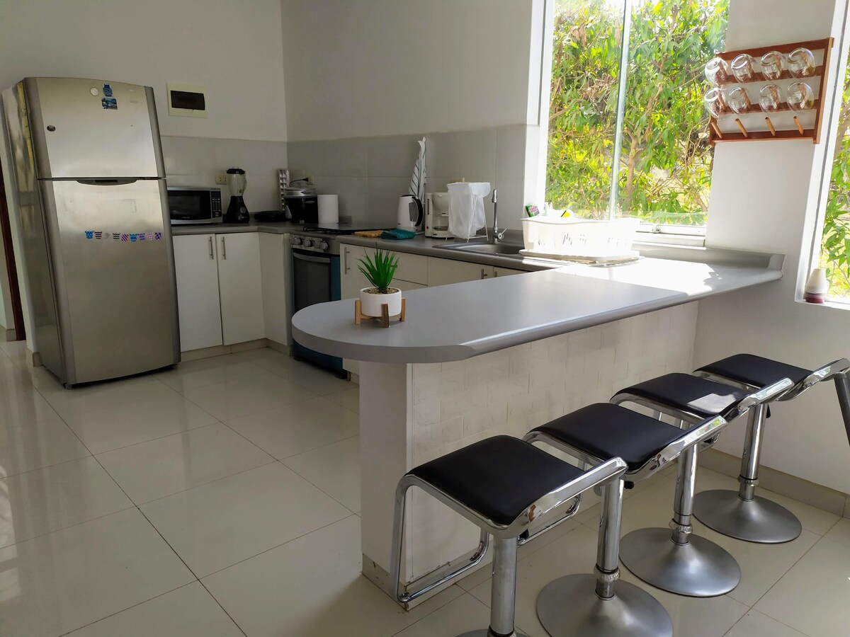 Departamento moderno y acogedor en barrio tranquilo, a solo 5 minutos de la playa. Cuenta con vista al mar, cocina equipada, WiFi rápido, TV en cada habitación, patio ideal para compartir, zona de lavandería y cochera. Entrada independiente y cámaras exteriores para mayor seguridad. Se aceptan mascotas pequeñas, previa coordinación. Ideal para disfrutar Mollendo con comodidad 🏖️✨
