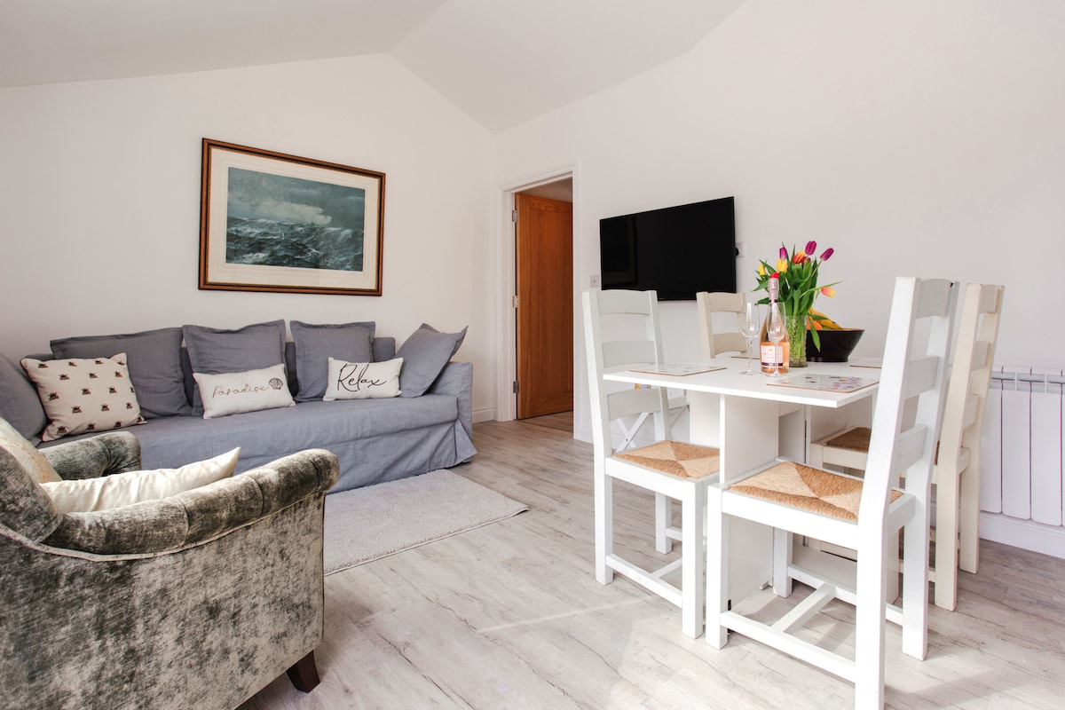 Disfruta del uso exclusivo de este encantador granero de roble independiente, con su planta superior recientemente convertida en un espacioso departamento. Ubicado en 30 acres de impresionantes terrenos privados y campo, perfecto para paseos tranquilos dentro y fuera del sitio. Cama tamaño súper king, puertas francesas con vistas, cocina pequeña, TV inteligente con sonido envolvente, mesa de billar, tenis de mesa, asientos al aire libre y barbacoa. Pubs y playas a pocos pasos o a poca distancia en auto. Wifi, estacionamiento incluido. Se admiten mascotas previa solicitud. ¡Descuentos en ferry disponibles, pregunta!