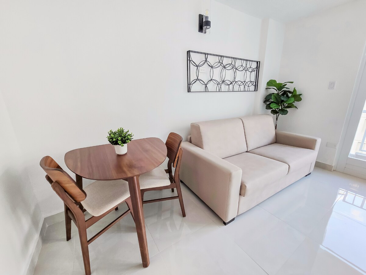 Apartamento moderno y exclusivo: una experiencia espectacular y única Disfruta de un balcón privado con cómodas sillas y una acogedora hamaca, perfecta para relajarte y sumergirte en el ambiente. A 5 minutos del aeropuerto/ a 12 minutos del Viejo San Juan. Autorregistro de entrada y salida. Situado en una zona privilegiada, a solo 100 pies de la playa, con restaurantes, mercados y otros servicios a pocos pasos. También ofrece acceso a Uber y taxis con un excelente servicio.