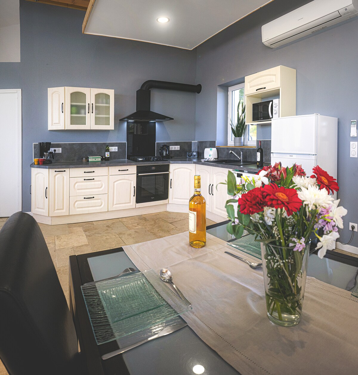 Venez vous ressourcer et vous retrouver seul ou en duo dans ce cocon de 80m2 entièrement rénové, situé au cœur du joli village ancien de Gensac en Gironde, avec une vue imprenable sur la vallée où vous pourrez admirer le soleil couchant. Vous serez conquis par son charme suranné, sa déco atypique et soignée et son confort incomparable. Un petit-déjeuner "à la française" vous est offert pour votre première nuit !