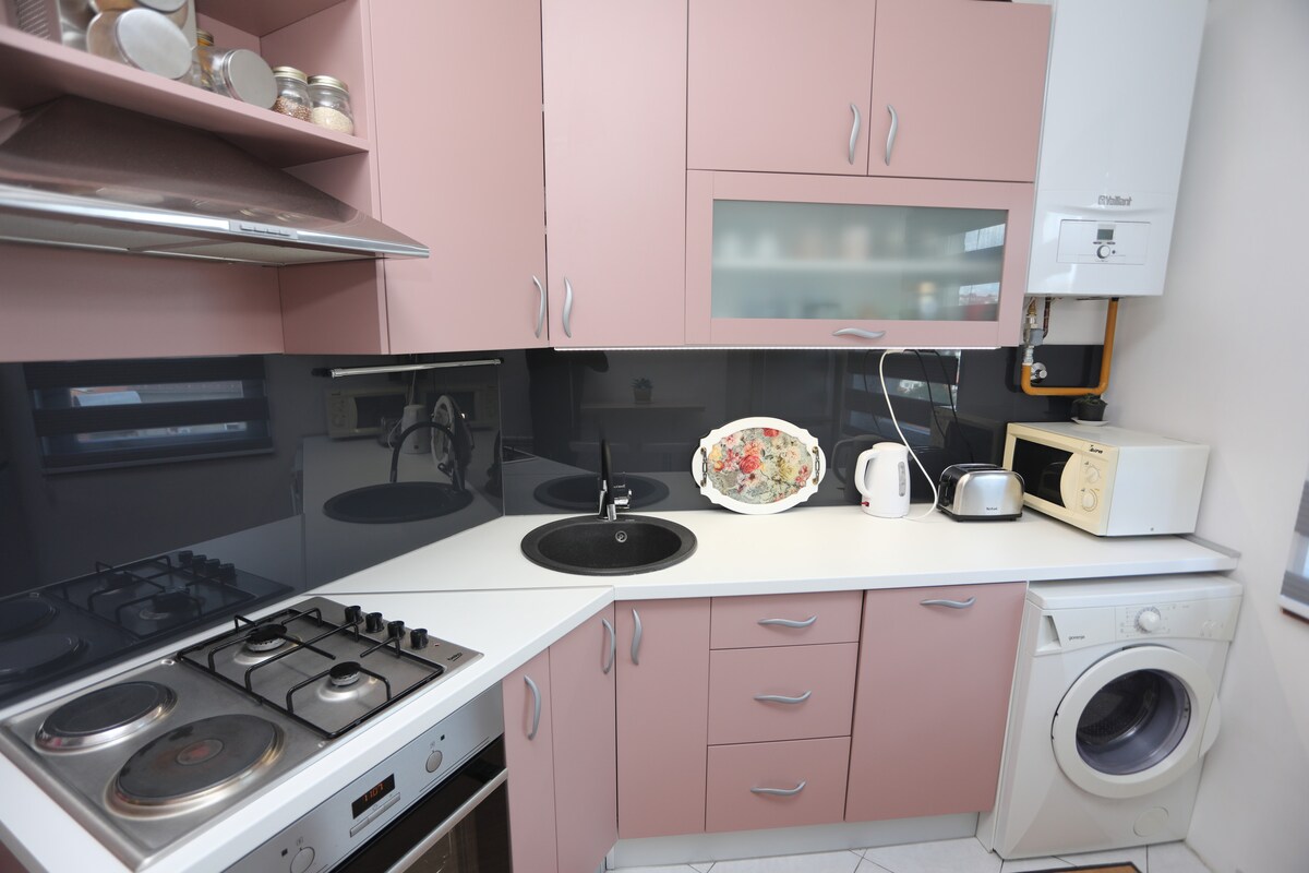 Gorgeous apartment completely remodeled with modern finishes throughout. Very spacious (72m ) and bright, large rooms. Beautiful fully applianced kitchen with eating area and enclosed balcony with yard view. King sized bedroom with high quality mattress and bedding. Large living room with work area and pull out couches. TVs and air conditioning in both rooms, plenty of storage cabinets. Desired old town location - walking distance to all stores and restaurants on the famous Bascarsija.