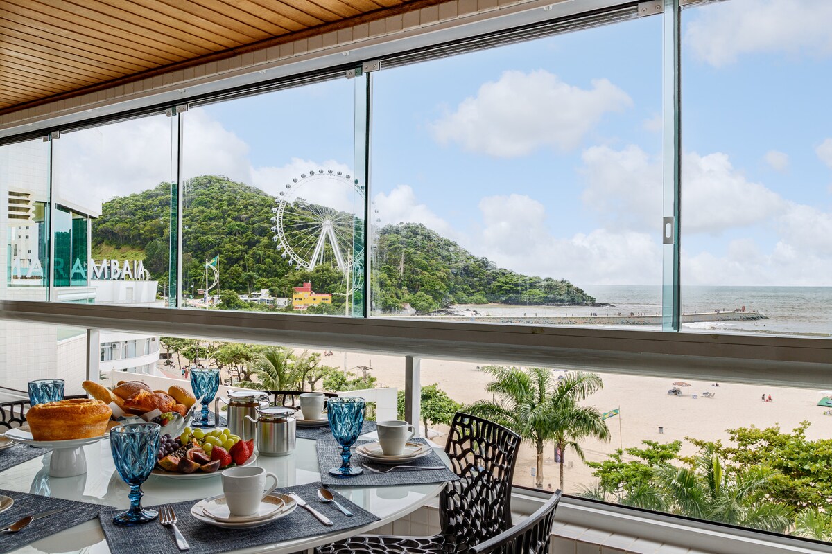 Apartamento de 180 metros cuadrados frente al mar en un piso alto, con una vista privilegiada del paseo marítimo. Edificio en la avenida frente al agua, solo cruza la calle para estar en la playa. 4 suites, gran sala de estar y comedor, baño con ducha y cocina gourmet equipada, que incluye una parrilla de carne. Internet rápido, aire acondicionado dividido y SmartTV en todas las habitaciones. Condominio con 2 piscinas y una terraza con vistas al mar. Un espacio de estacionamiento incluido en el precio, espacios adicionales a pedido.