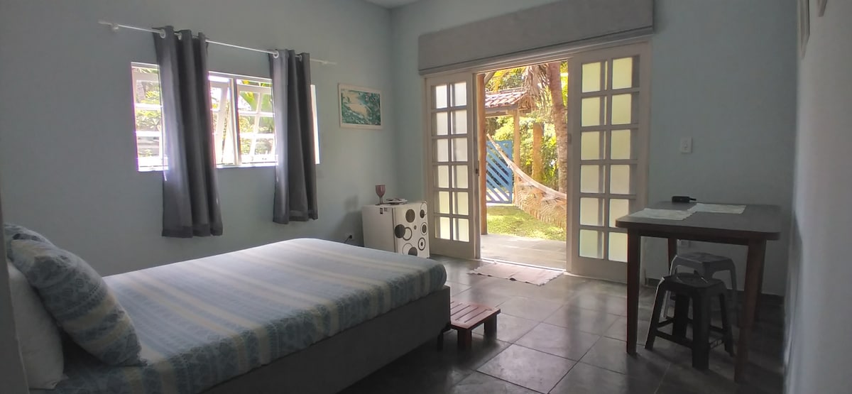 Lugar tranquilo Ubicado en Vila da Itamambuca, A solo 10 minutos a pie de la playa, este espacio compacto cuenta con todas las comodidades necesarias para una agradable estadía en una de las playas más hermosas de la costa norte de SP. Cocina integrada bien equipada si estás cansado de tener que compartir la nevera y tener gente cocinando al mismo tiempo. Filtro en el grifo, microondas, licuadora, cafetera, sandwichera, tostadora, exprimidor de naranja Todo diseñado pensando en el bienestar de los huéspedes