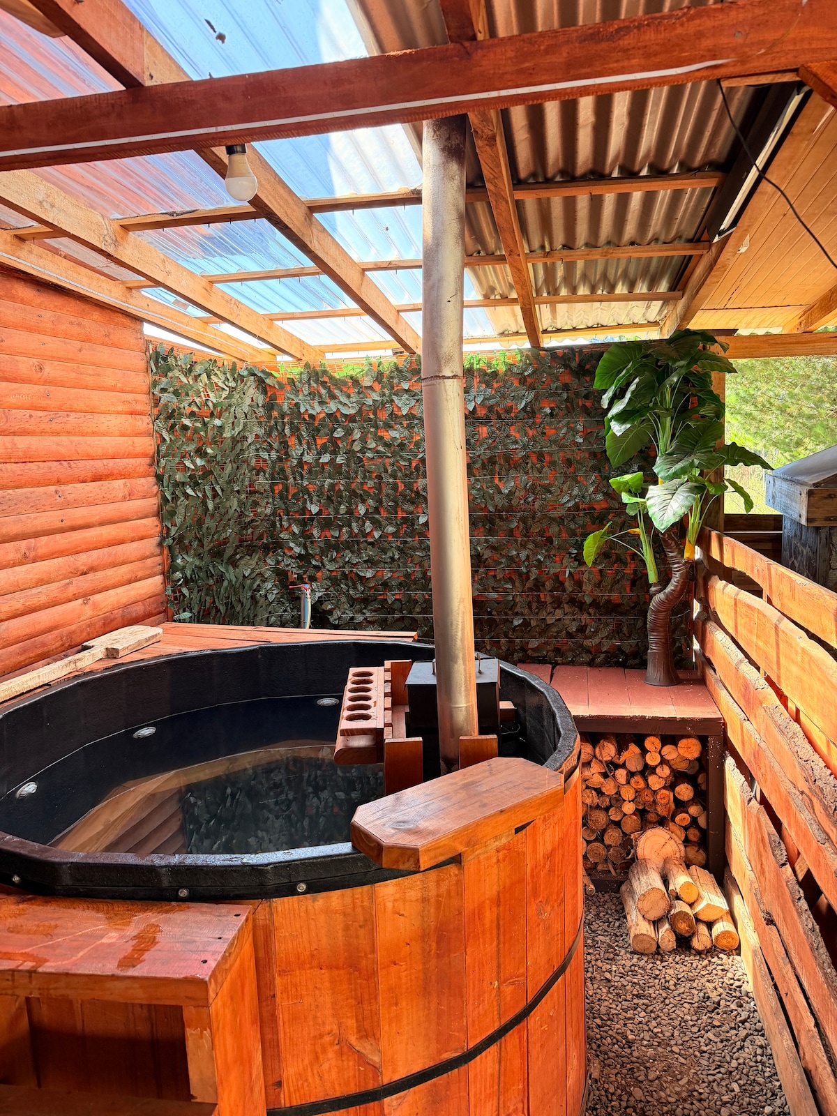 Cabaña de Madera estilo rústica. 100% equipada, ubicada en una pequeña loma de donde se pueden apreciar bellos atardeceres. para llegar ruta pavimentada en un 99% si vienes de Chillan, Concepción o Tome. a minutos de ruta 5 sur y autopista del Itata. Tinaja Caliente incluida en valor de AIRBNB días festivos, viernes y sábado Hasta Noviembre. resto de día y mes, se cancela en la cabaña $35.000 por día. sin limites de horas. se entrega lista para usar en 35°C aprox. más leña. relajo garantizado!