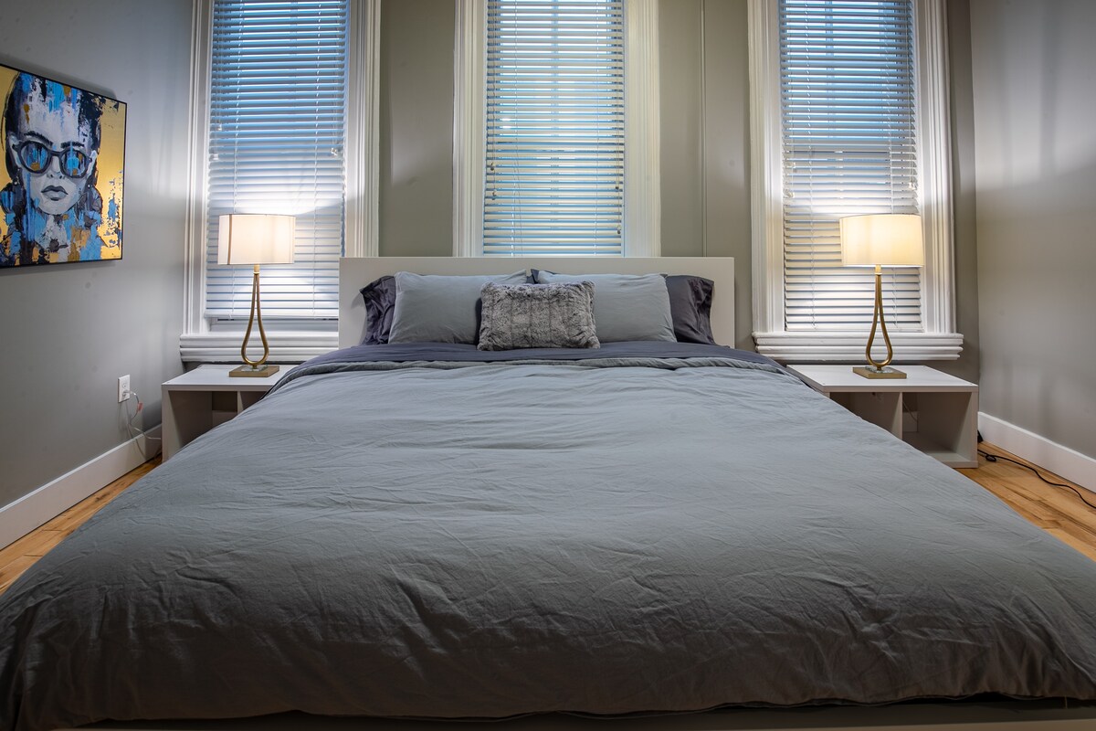 Apartamento grande y recién remodelado en una casa histórica en una calle tranquila en el corazón del centro de Grand Rapids. Cada dormitorio tiene un armario grande. Nuevos electrodomésticos de alta gama en cocina. ¡Todos los utensilios de cocina! • Llegada autónoma las 24 horas a través del teclado/cerradura inteligente • Puntuación de la caminata 83 (la mayoría de los recados realizados a pie) • Cocina totalmente equipada y abastecida totalmente equipada • Patio privado. • TV inteligente de 55 pulgadas con Roku + Youtube TV (cientos de canales) • Estacionamiento de garaje para 2 vehículos (más espacio disponible si es necesario) - Wifi de 80 Mbps.