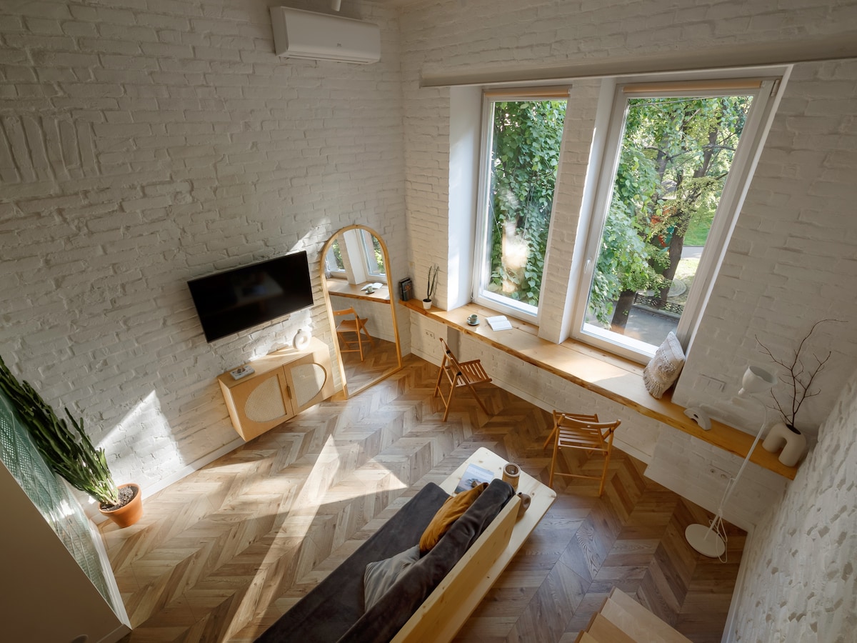 ¡Te damos la bienvenida a tu acogedor refugio en Ivano-Frankivsk! Este apartamento forma parte de una villa austriaca de 1904, que conserva el encanto antiguo y la comodidad moderna. El apartamento cuenta con una cama plegable tamaño king, lo que garantiza la máxima comodidad. La villa se divide en tres apartamentos, lo que garantiza unas vacaciones relajantes, con vecinos solo en uno de ellos. La entrada tiene un auténtico estilo vintage con un ligero desgaste, lo que se suma al carácter especial. También hay un patio privado disponible para una relajación acogedora.