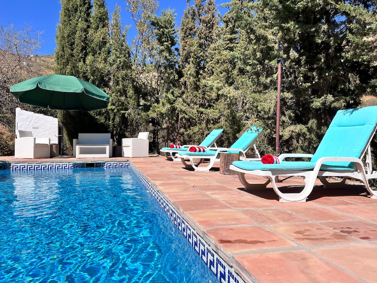 Casa Lasoco is a beautiful rural house in the heart of Andalusia with a fantastic swimming pool ideal for having a relaxing time while enjoying the amazing view of the mountains of the Axarquía, in Malaga. Situated between the villages of Riogordo and Comares is a very peaceful area with thousands of olive and almond trees. The nearest beach is only half an hour away and nearby cities like Granada, Malaga and Cordoba are very easy one day trips. Enjoy the quietness of authentic rural Spain!