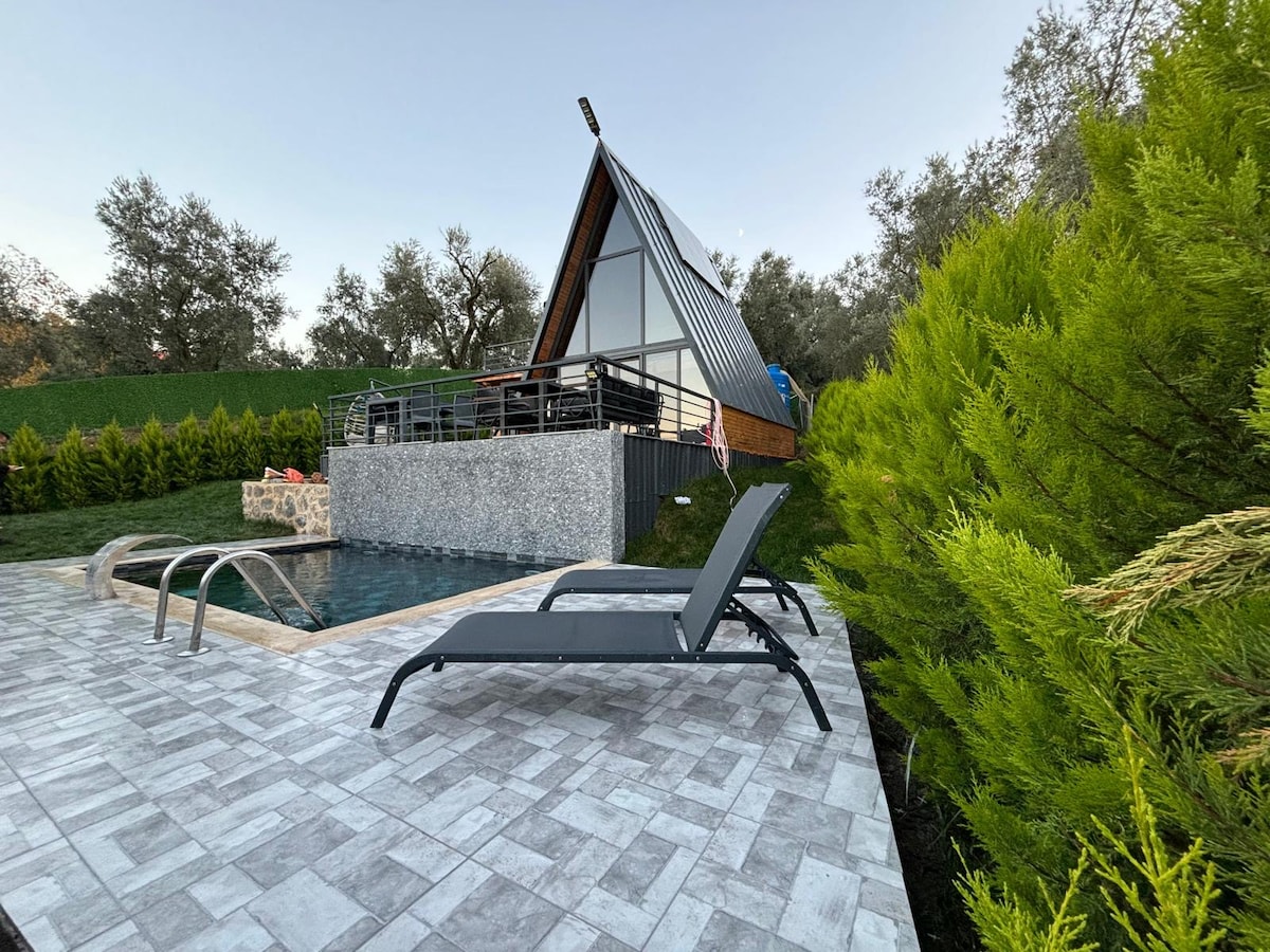 Nuestro Eylul Doga Evi está especialmente diseñado para que te alejes del caos ruidoso de las ciudades y disfrutes del silencio y el entorno natural. Nuestra casa tiene dos dormitorios y ambas habitaciones tienen baños privados. Tiene una amplia sala de estar. La sección de cocina está junto con el salón y ofrece todas las instalaciones necesarias a nuestros valiosos huéspedes. Hay un estacionamiento privado, camelia y zona de barbacoa y jardín de invierno en la sección del jardín. Nuestra piscina está climatizada y puedes disfrutarla en todas las estaciones.