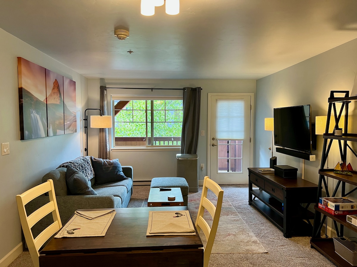 Este espacioso condominio recién remodelado está CERCA DE TODO. ¡4 bicicletas eléctricas disponibles para alquilar en verano! A solo 2 minutos a pie de MTN, restaurantes, pequeña tienda de comestibles, cervecería y más, a 5 minutos en coche de las tiendas de comestibles y a 7 minutos en coche del corazón del centro de la ciudad. Transporte de invierno gratuito + transporte en autobús. La escapada perfecta para familiares o amigos, ¡especialmente si también quieres una pequeña AVENTURA! ¡Senderismo, pesca, flotar en el río, andar en bicicleta, esquiar/embarcar y mucho más! ¡DURANTE TODO EL AÑO, el barco de vapor lo tiene todo!