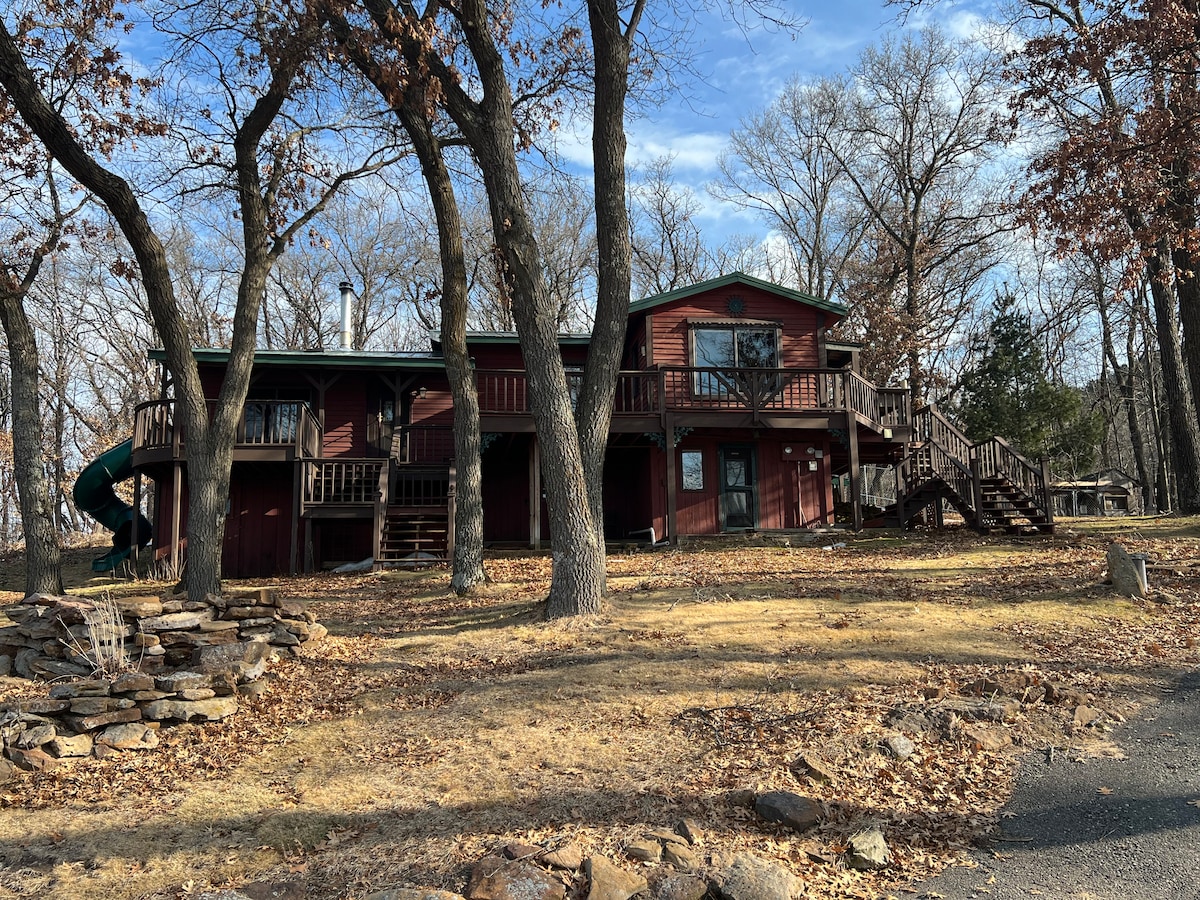 Escápate entre las vistas, los sonidos y los olores de la naturaleza en la cabaña Fat Porcupine en Black River Falls. Robinson Creek corre a lo largo de la parte trasera de la propiedad debajo de una impresionante pared rocosa. La orilla arenosa es el lugar perfecto para relajarse. La casa se encuentra en un terreno boscoso de 2,5 acres lleno de árboles de hoja perenne aromáticos. La cabaña es ideal para parejas que buscan un refugio tranquilo y acogedor, y también hay mucho espacio para dormir para familias o grupos para crear muchos recuerdos felices. ¡Esperamos que te sientas como en casa!