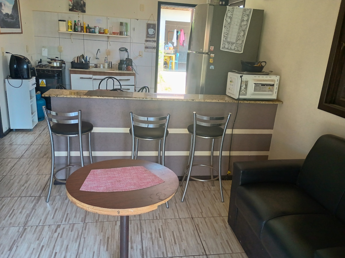 Acogedora 🏡 casa entre la playa y la laguna Relájate en una casa sencilla y cómoda equipada con todo lo necesario. Ubicado en Garopaba do Sul, estarás a solo 800 metros de la playa y a 500 metros de la laguna Jaguaruna. ✨ El lugar 2 dormitorios con una cama doble 1 WC Sala de estar y cocina integradas Zona al aire libre con zona de barbacoa Amplio patio con estacionamiento 🛋️ Comodidades Condicionamiento Televisión con Netflix Alquiler de kayak para remar en la laguna