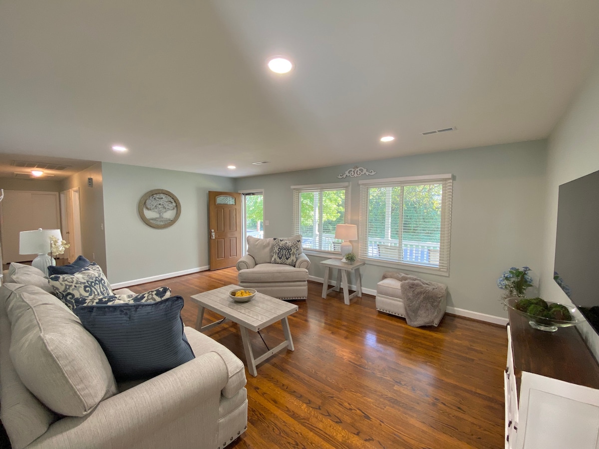 ¡Bienvenido a tu acogedora granja rústica moderna recientemente renovada (julio de 2024)! Ubicado en un barrio tranquilo y encantador a pocos minutos de las principales atracciones de High Point: a 10 minutos de HPU y Furniture Market, a 4 minutos de N. Main St., a 9 minutos de Oak Hollow Lake y Golf. Disfruta de una cocina completamente renovada con encimeras de granito, salpicadero de azulejos, nuevos gabinetes y electrodomésticos. ¡Relájate y siéntete como en casa en esta tranquila joya en el corazón de High Point, Carolina del Norte!