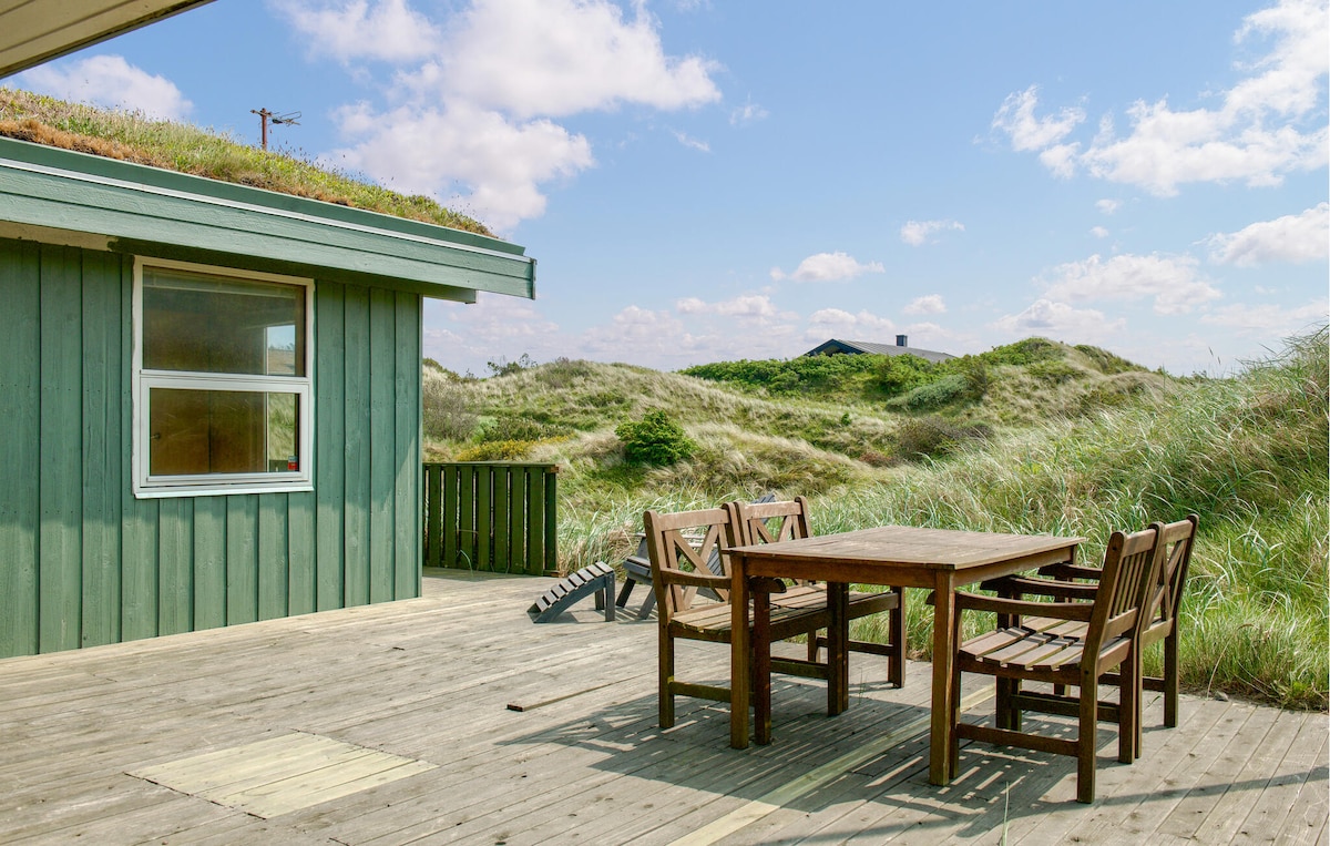 Relájate con toda la familia en este alojamiento tranquilo. A 300 metros a pie de la fantástica playa de arena, a través de las características dunas de la costa oeste. Terraza de madera completamente privada que rodea la casa, lo que te permite encontrar siempre un gran lugar para disfrutar del sol, ¡o saltar al baño en la naturaleza para relajarte! ¡Prepárate para experimentar los muchos lugares interesantes del norte de Jutlandia a poca distancia en coche! Nota: las sábanas/ropa de cama se pueden alquilar por un cargo adicional de 25 euros/persona