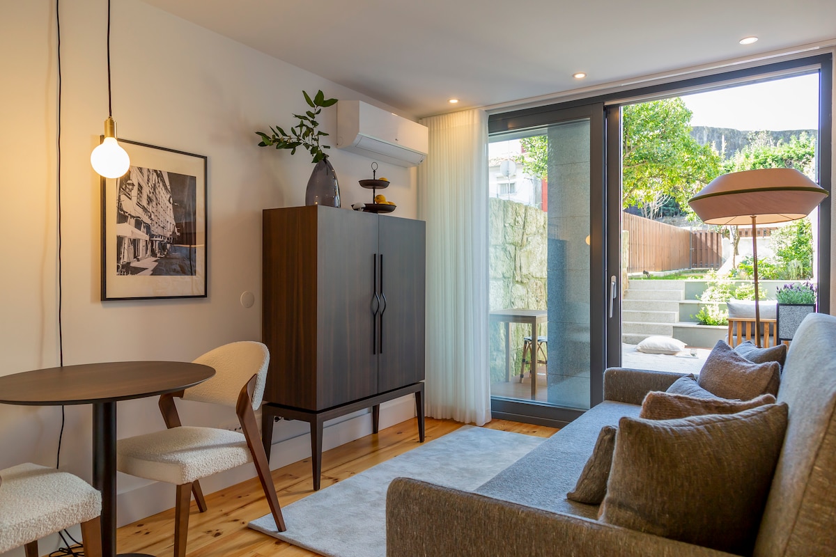 Welcome to our Premium Fontaínhas Garden Apartment, located in the heart of Porto's historic center, near Batalha square, Majestic Café, and 10min walking to Sao Bento. This apartment boasts a sleek and stylish decor, and features a beautiful garden where you can find refuge to relax on sunny days before exploring the city. With such a prime downtown location, we offer guests the charm of Porto's historical setting, in an apartment with all the deluxe details you need for a wonderful stay!
