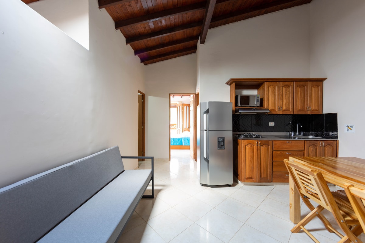 El pueblo más lindo de Antioquia les da la bienvenido a este acogedor y agradable apartamento que esta ubicado a dos cuadras del parque principal de Jardín (Antioquia). Es un apartamento en un primer piso sin balcón, distribuido en 2 espacios independientes pero sin puerta , 1 baño, 1 cocina, 1 zona de ropas. Es un primer piso, no es necesario subir escaleras, apto para personas con movilidad reducida.