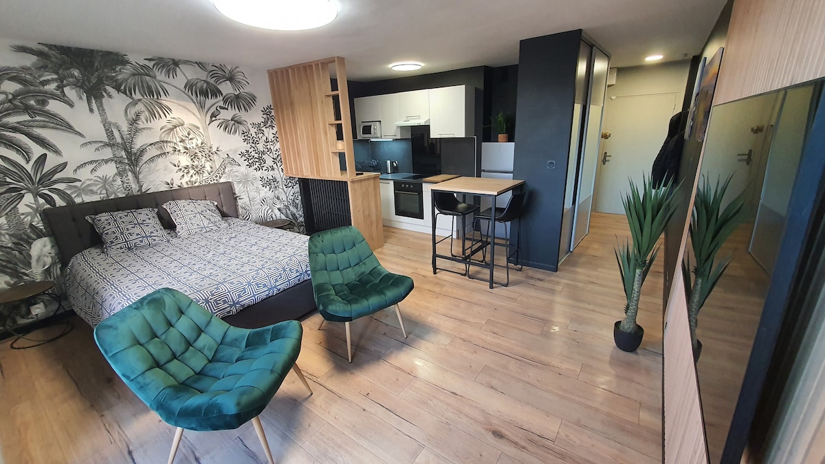 Apartamento de alta gama y reformado de 60m2 amueblado con bañera Balneo de 180x120, Sauna para 3 personas, altavoces bluetooth integrados, spots conectados y multi color. Encontrará todo lo necesario para olvidarse del día a día y escapar durante su estancia. Venga a pasar momentos en pareja para relajarse en nuestro hermoso apartamento.