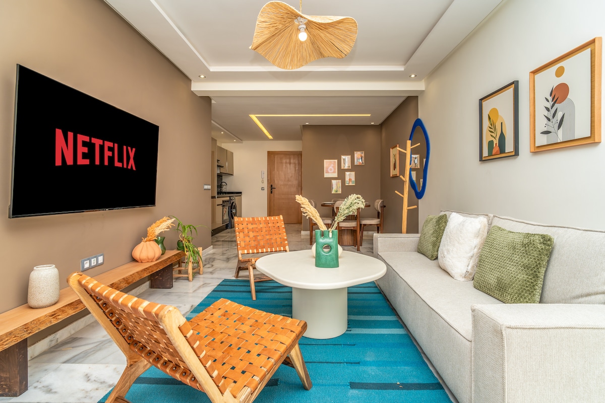 Descubre el lujo moderno en este elegante apartamento totalmente equipado en el corazón del distrito de Gueliz de Marrakech. Internet ultrarrápido lo hace ideal para viajeros de negocios y de placer. Camina hasta la estación de tren y el Teatro Real y disfruta de la proximidad a las tiendas Carré Eden. A poca distancia en taxi de Jamaa el Fna y de las principales atracciones. Por favor, ten en cuenta que no se aceptan parejas marroquíes solteras y huéspedes. ¡Reserva ahora para disfrutar de una experiencia inolvidable en Marrakech!