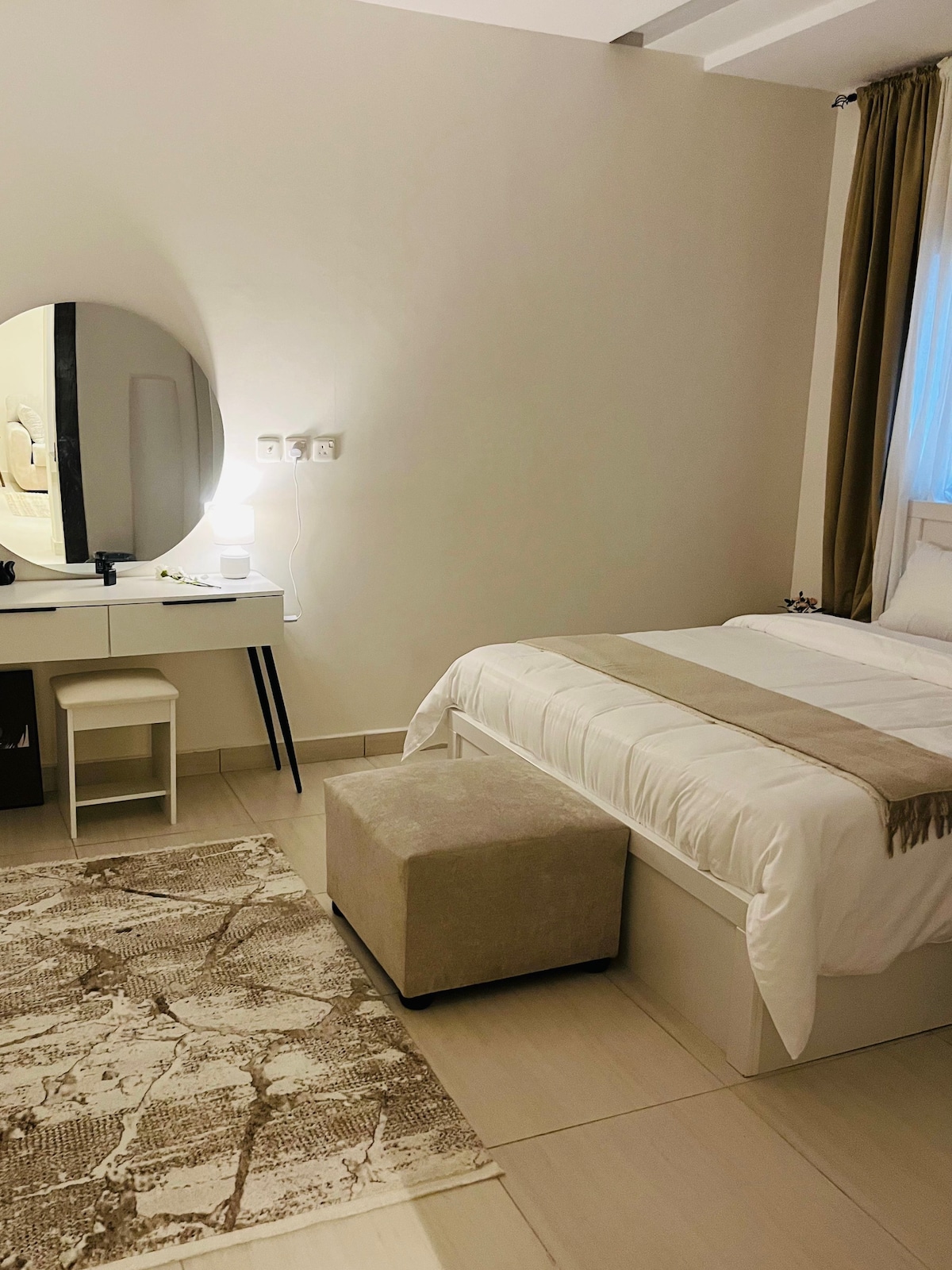Disfrutarás de una experiencia de lujo en este céntrico alojamiento. Un modesto apartamento en el centro de la ciudad puede ser «el punto de partida perfecto para explorar la ciudad, especialmente diseñado para a quienes les gustan los estilos modernos y cálidos». En coche: El aeropuerto está a 15 minutos. Corniche a 16 minutos. Pista de Fórmula 1 a 15 minutos. Centro comercial del mar Rojo a 16 minutos. Centro comercial de Arabia a 8 minutos. Caminando: Lavanderías a 5 minutos. Supermercado a 5 minutos.