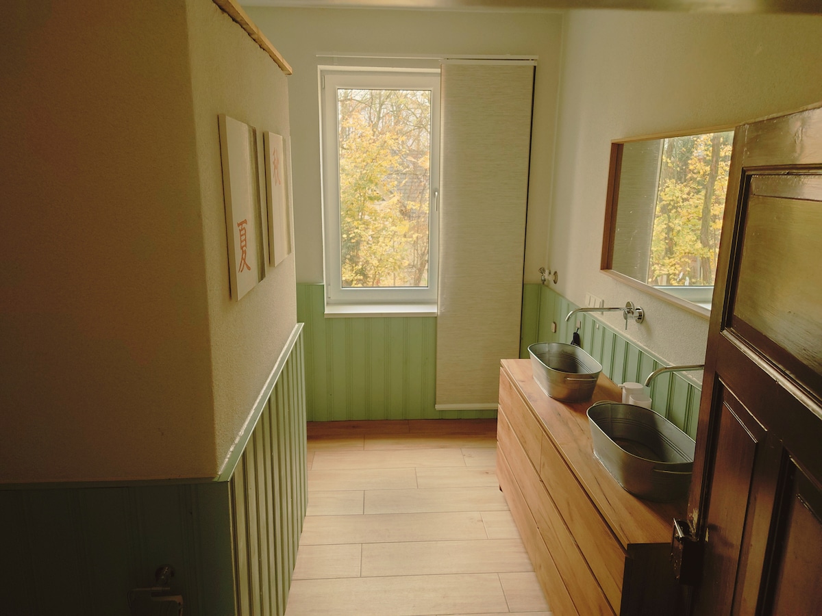 Apartamento de unos 40 metros cuadrados, limpio y luminoso, con cocina americana, sala de estar y dormitorio separado. Baño muy bonito y luminoso con ducha, inodoro y sauna integrada para 2 personas (Klafs). Ideal para relajarse después de pasear en la temporada de frío. El apartamento se encuentra en el tercer piso y tiene su propia entrada independiente. Los propietarios viven en el mismo edificio. El apartamento tiene un aparcamiento cerrado. Las bicicletas se pueden estacionar de forma segura en el patio. Ambiente moderno.