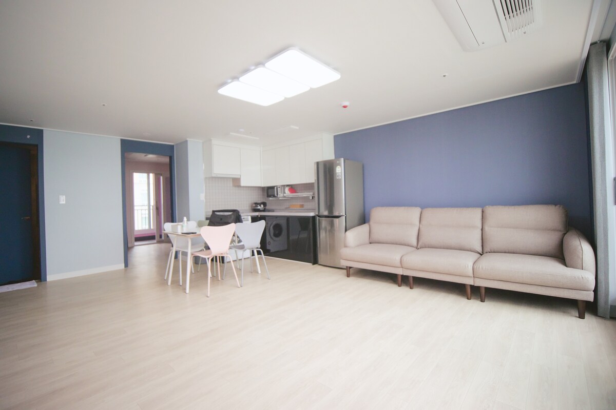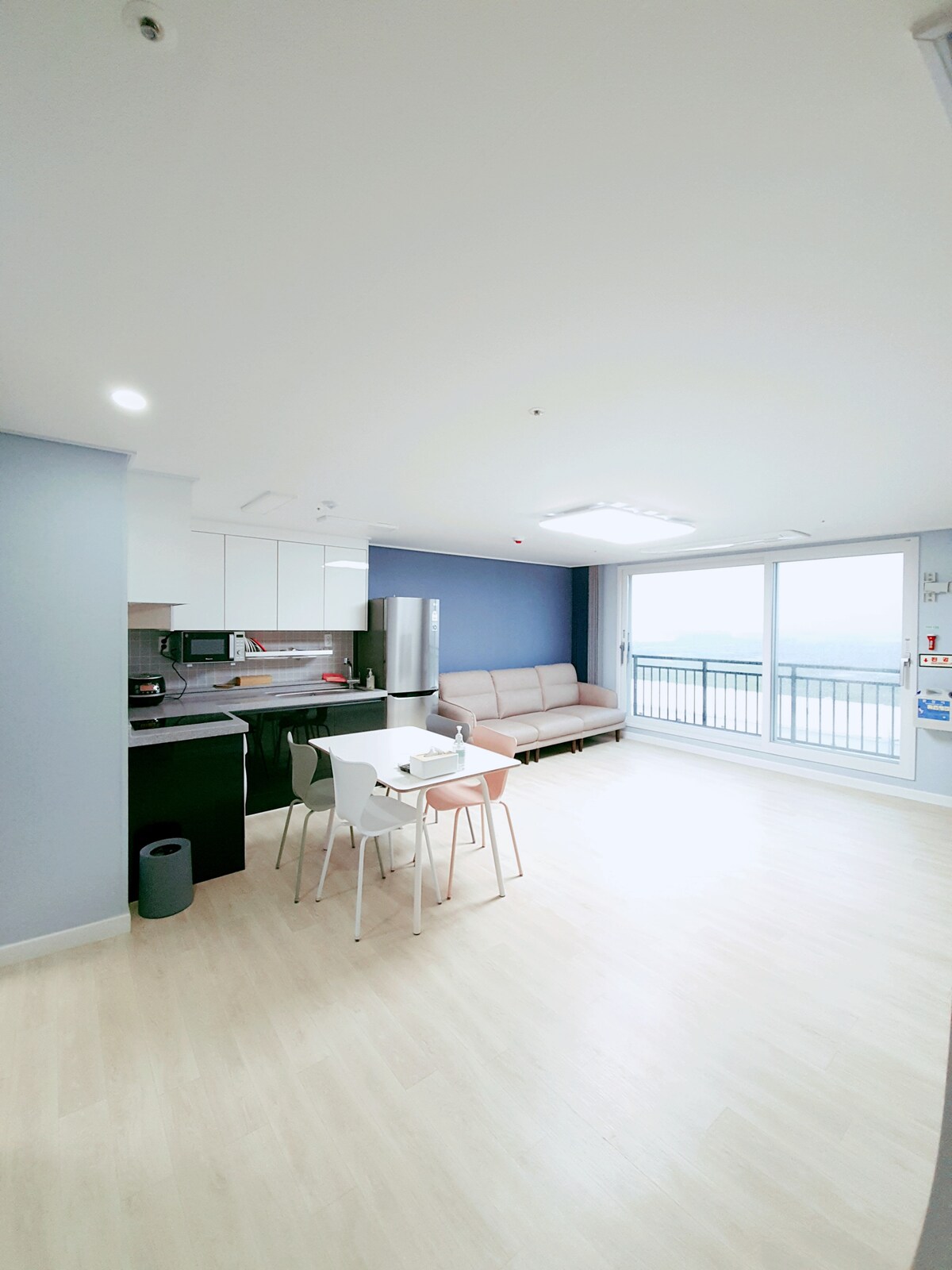 '우리 가족이 머물기에 어떤 숙소가 적합할까?' 라는 생각으로 호텔을 운영 합니다. 우리 호텔은 정식 숙박업 허가를 받은 콘도형 호텔이며, 파스텔톤의 모던한 인테리어와 최대 8인까지 사용가능한 단체 및 가족 여행의 최적의 호텔입니다. 최상의 서비스를 제공하게 위하여 5성급 호텔에 사용되는 침대, 침구, 타월을 세팅 하였고, 스위트룸은 거실/ 주방, 침실 2개로 구성되며, 콘도형 호텔에 걸맞은 다양한 조리도구를 갖춘 편리한 주방, 넓은 거실, 붙박이장, 화장대, 암막커튼, 블라인드, 안전한 보안시설, 편리한 주차시설, 각 방마다 설치된 시스템 에어컨, 4~6인이 사용가능한 식탁, 4인용 소파, 침실에는 투매트리스 독립스프링 퀸 침대 1개, 1인용 침구류 3세트가 기본으로 세팅, 경추베게는 아주 편한 잠자리를 제공 할 것입니다. 에어비앤비 규정에 따른 매뉴얼에 따라 최선으로 청소와 소독을하고, 침구류와 타월을 최상의 컨디션으로 유지/ 세탁 합니다.