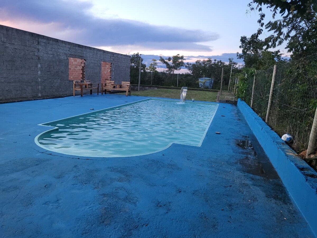 Aquí tenemos una hermosa piscina, garaje para hasta tres autos, dos dormitorios, 3 baños, amplia sala de estar, cocina, área de barbacoa, estufa de leña, billar (piscina), balcón con vistas a la piscina y mesa de balcón y jardín, nuestro alojamiento contiene 5 camas, dos camas dobles, una litera y una cama individual, un sofá central, un sillón, dos televisores con acceso a Netflix, Wi-Fi, dos mecedoras, área de ocio que es ideal para juegos y reuniones familiares. Cerca de Serra do Cipó
