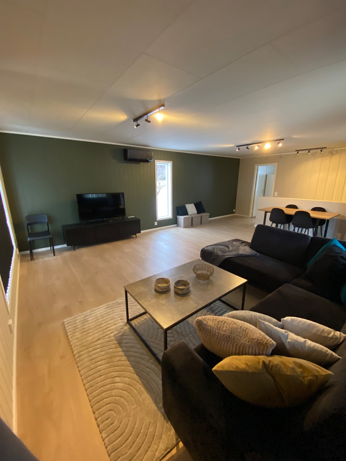 Te damos la bienvenida a las vacaciones en Mylla. ¡A solo 1 hora de Oslo y a 45 minutos de Gardermoen! Esta gran cabaña de 2 pisos ofrece vistas de 180 grados de la hermosa naturaleza de Mylla y Nordmarka. ✨ Aspectos destacados: 🏡Cabaña espaciosa para 9 personas Jacuzzi 🛁 de leña para 5-6 personas con luces y altavoces ❄️La pista de esquí comienza justo debajo de la cabaña, con acceso a la gran red de pistas de esquí de fondo de Nordmarka. 🌊 A poca distancia de varias zonas de baño 🚴♂️ Carriles bici y rutas de senderismo justo desde la cabaña Sala de estar🔥 grande y acogedora