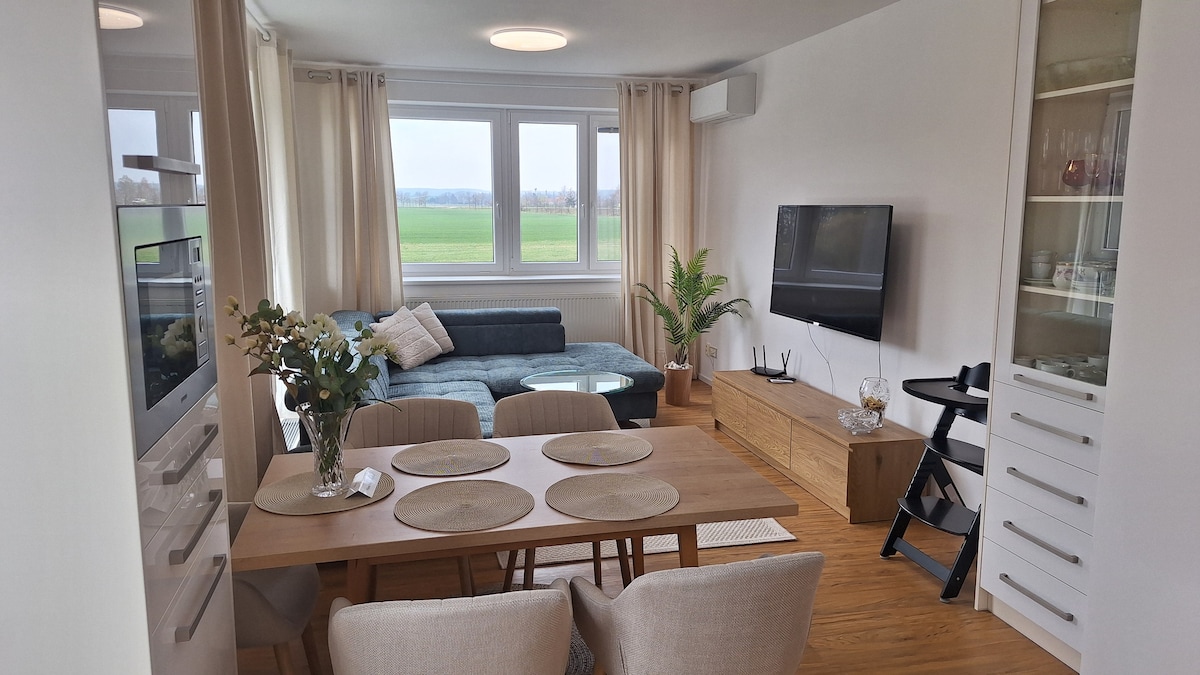 Alojamiento completamente nuevo en las tranquilas afueras de Třeboň. Un lugar excepcional para iniciar excursiones en bicicleta. A pocos minutos a pie del centro. Posibilidad de guardar las bicicletas. Aparcamiento propio. Cocina moderna totalmente equipada. ¡Terraza con parrilla! Para su comodidad, también O2TV, Spotify, Netflix.