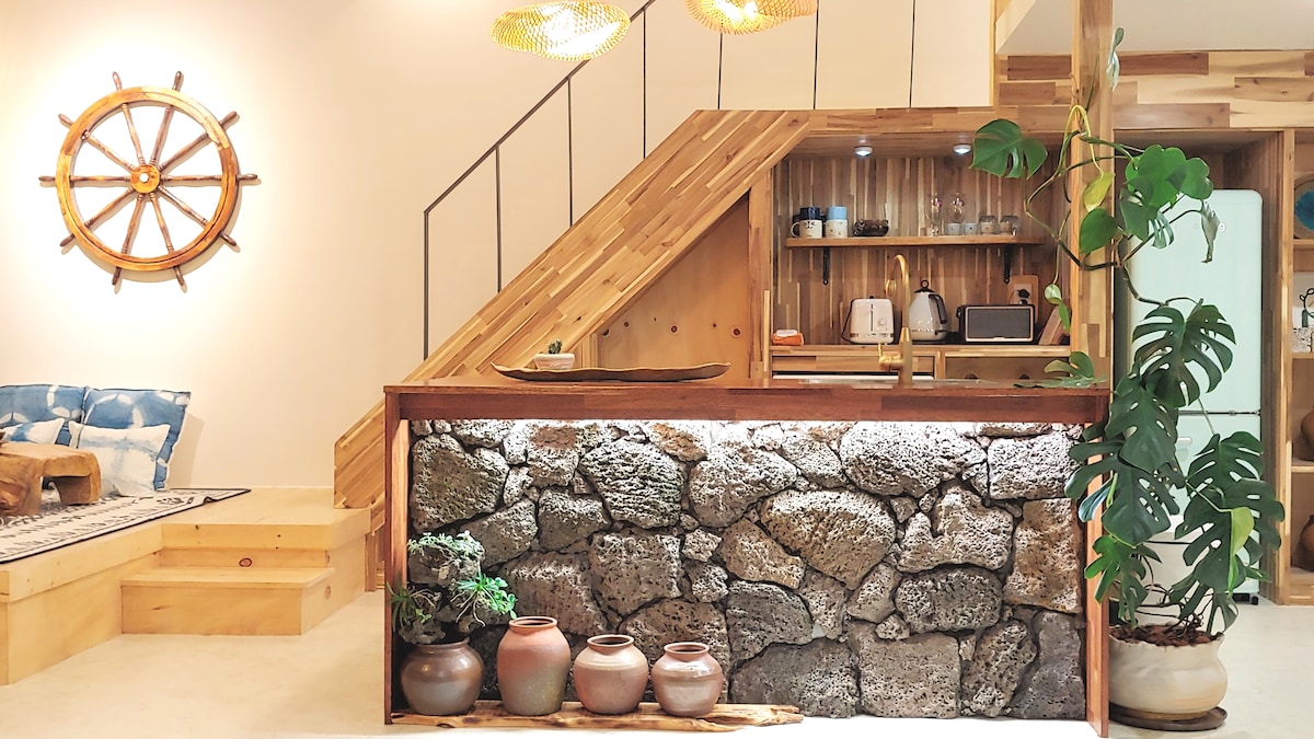 Situado en el pueblo costero de Hamdeok, Jeju Esta es Hoyudong Stay, una casa privada con una pared de piedra. Tómate un descanso de la vida ajetreada Para que puedas relajarte por completo en el tranquilo pueblo de Jeju Este espacio está preparado con comodidad y calidez. Playa Hamdeok, que puedes conocer en unos 10 minutos a pie. El ambiente tranquilo del pueblo se mezcla Estarás satisfecho tanto con el viaje como con la relajación. Cuando entres en el alojamiento Sala de estar soleada y dormitorio acogedor, Una cocina ordenada y una cómoda sala de estar están conectadas. En el espacio al aire libre rodeado de paredes de piedra Hay un amplio patio de césped y un jacuzzi privado al aire libre. Puedes aliviar cómodamente la fatiga de tu viaje con agua tibia. Por la noche, con una fogata Siente la tranquila noche de Jeju lentamente. Viajes familiares, viajes con niños, reuniones con amigos e incluso viajes familiares grandes. para que puedas quedarte cómodamente con cualquier compañero Hemos preparado cuidadosamente el espacio y las instalaciones. En un espacio donde coexisten la sensibilidad y la comodidad de Jeju Descansa en cuerpo y mente Disfruta de un viaje especial a Jeju.