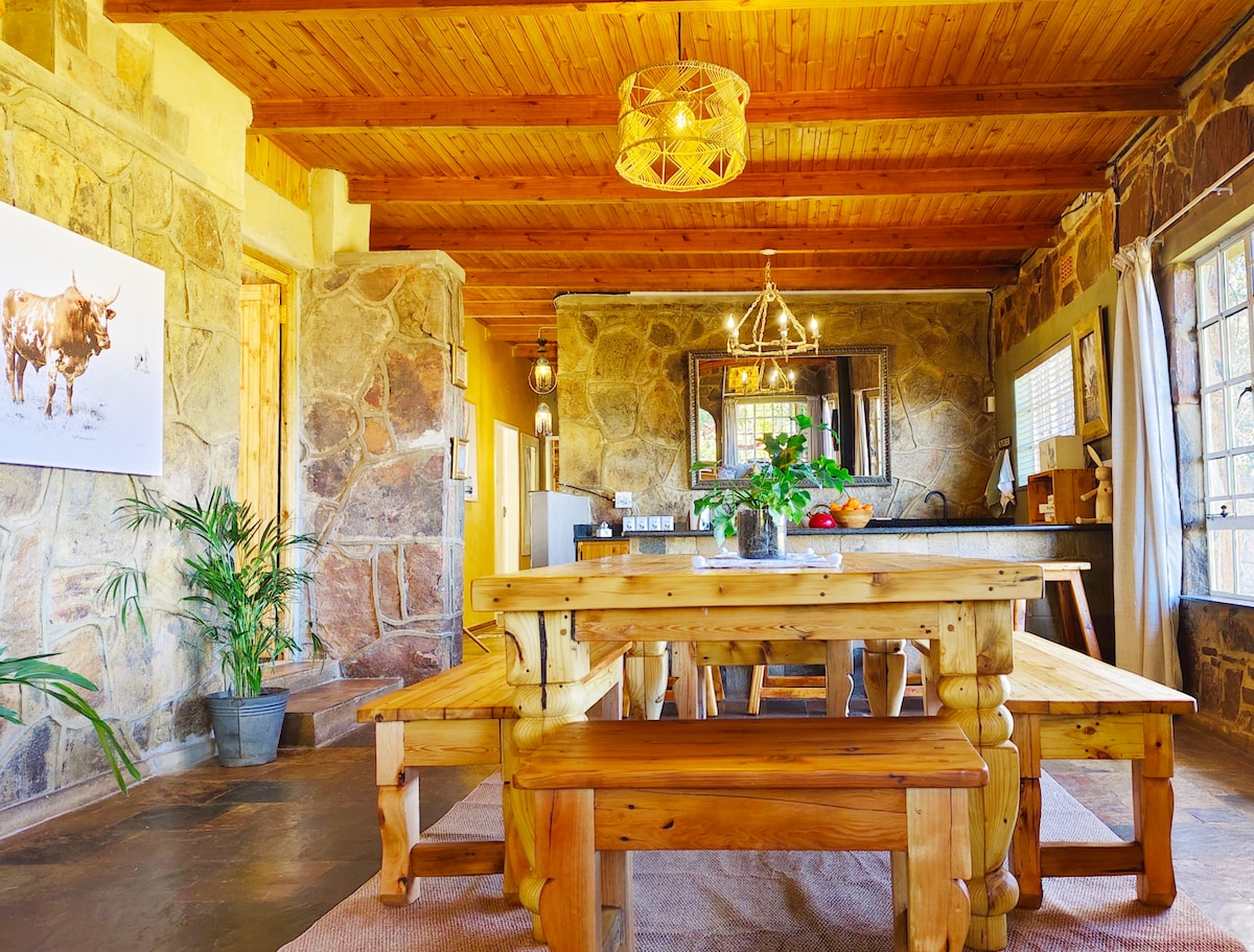 Bienvenido a nuestra cómoda cabaña de autoservicio fuera de la red enclavada en el corazón de las montañas de Magaliesburg. Pasa un retiro tranquilo en una biosfera mundialmente galardonada por la UNESCO junto a la garganta del Alto Tonquani. Relájate con los pies en el río Sterkstroom que está situado a menos de 50 metros de la cabina. Ya sea que busques aventura o simplemente quieras relajarte, nuestra ubicación ofrece una gran cantidad de actividades para deleitarte, tanto dentro de nuestra finca como en los alrededores.