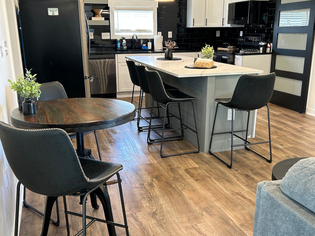 Relájate con toda la familia en este encantador alojamiento de dos dormitorios y un baño. Esta estancia incluye una cama king y una queen, con un televisor en cada dormitorio. Puedes comer en uno de los muchos restaurantes locales o preparar tu propia comida en la cocina totalmente equipada. Se incluyen un lavavajillas, microondas, freidora de aire, Keurig, tazones para mascotas y platos/utensilios para niños pequeños. Aprovecha el patio trasero vallado, la chimenea y la parrilla de gas. Encontrarás una cinta de correr, una elíptica y pesas en el garaje.