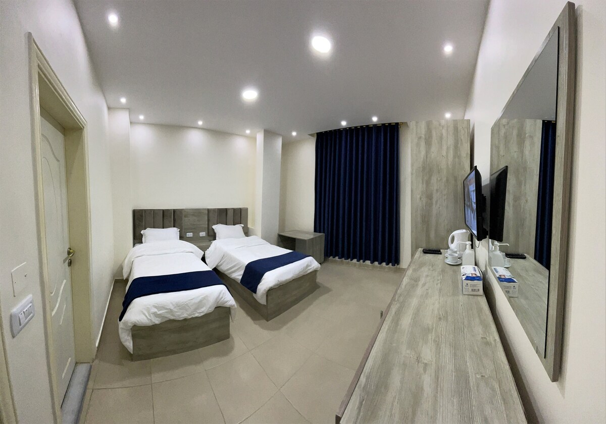 Alójate con estilo en este apartamento contemporáneo RECIÉN amueblado y TOTALMENTE equipado, y disfruta de: > Habitaciones amplias y luminosas. > Vistas privadas y sin obstáculos de la ciudad. >Los mejores restaurantes/cafeterías, tiendas de comestibles y mucho más, todo a poca distancia a pie. > Ubicación dinámica, cerca de todas las carreteras principales de la ciudad. - El centro de la ciudad está a 10 minutos en coche :) Servicios: - Wifi de alta velocidad. - TV inteligente. - Bañera. - Aire acondicionado. - Aparcamiento gratuito Esta es una opción ideal para familias o amigos que buscan disfrutar de una cómoda estancia de cinco estrellas en Amán.