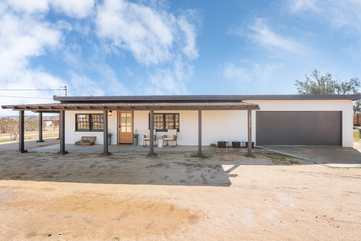 Relájate y recarga energías en Casa de Alta Loma, donde te espera comodidad y tranquilidad: - Bañera de hidromasaje para sumergirse bajo las estrellas. - Almohadilla de yoga sombreada para relajarte y encontrar tu centro. - Ducha al aire libre para enjuagarse el día bajo el cielo abierto - Fogata junto al mural para asar malvaviscos. A solo 4 millas del Parque Nacional Joshua Tree, a 1 milla de las tiendas y restaurantes locales, Casa de Alta Loma ofrece vistas panorámicas al desierto en todas las direcciones, un espacio acogedor y acogedor que hace que sea fácil quedarse y saborear el momento.