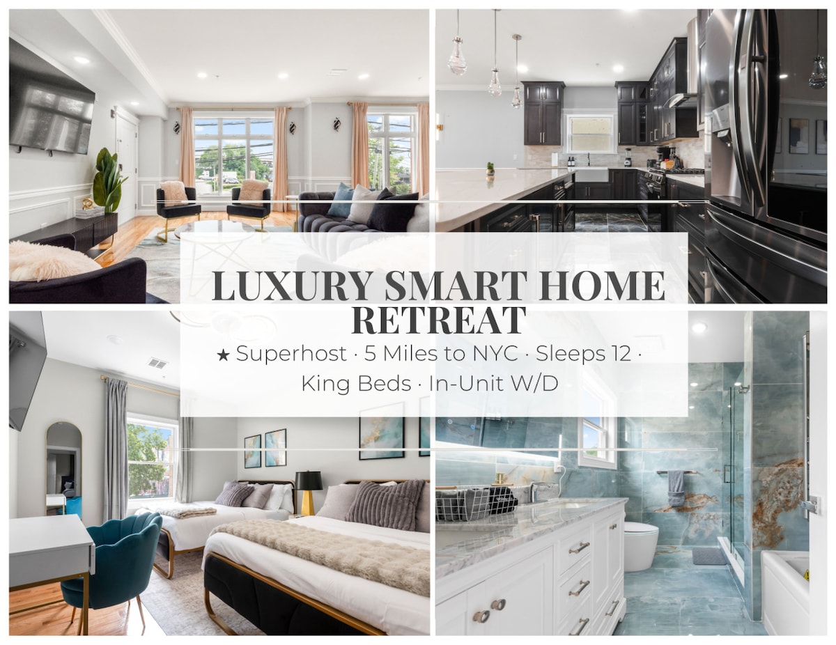 Estacionamiento gratuito, cama tamaño king cerca de NYC y EWR, 3 dormitorios 2 baños